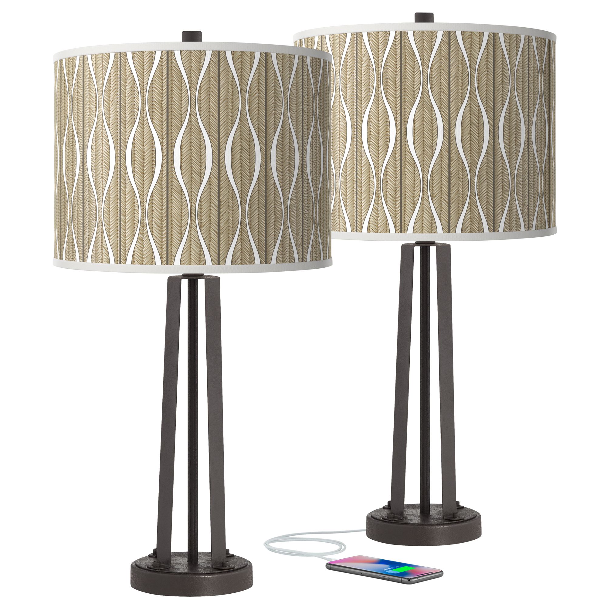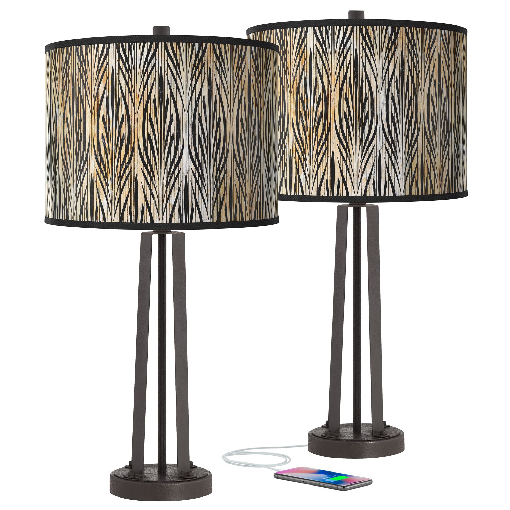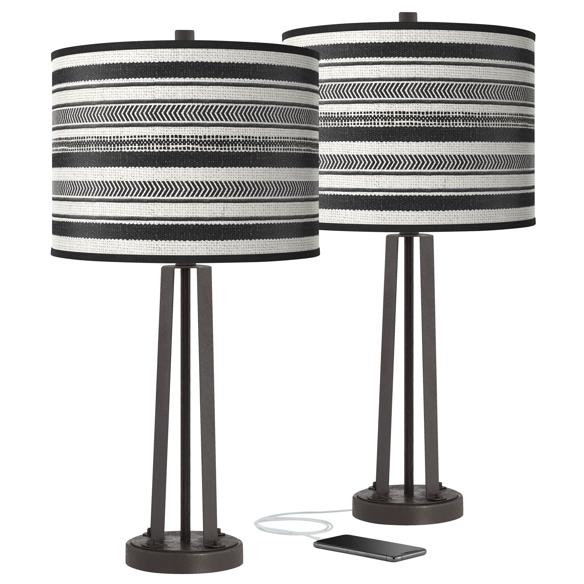 Giclee Glow Susan 25 1/2" Stripes Noir Bronze USB Table Lamps Set of 2