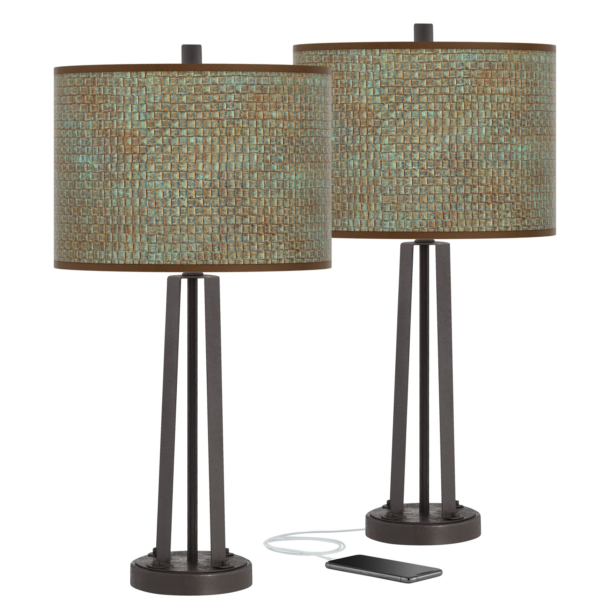 Giclee Glow Bronze 25 1/2" Interweave Patina Shade USB Lamps Set of 2