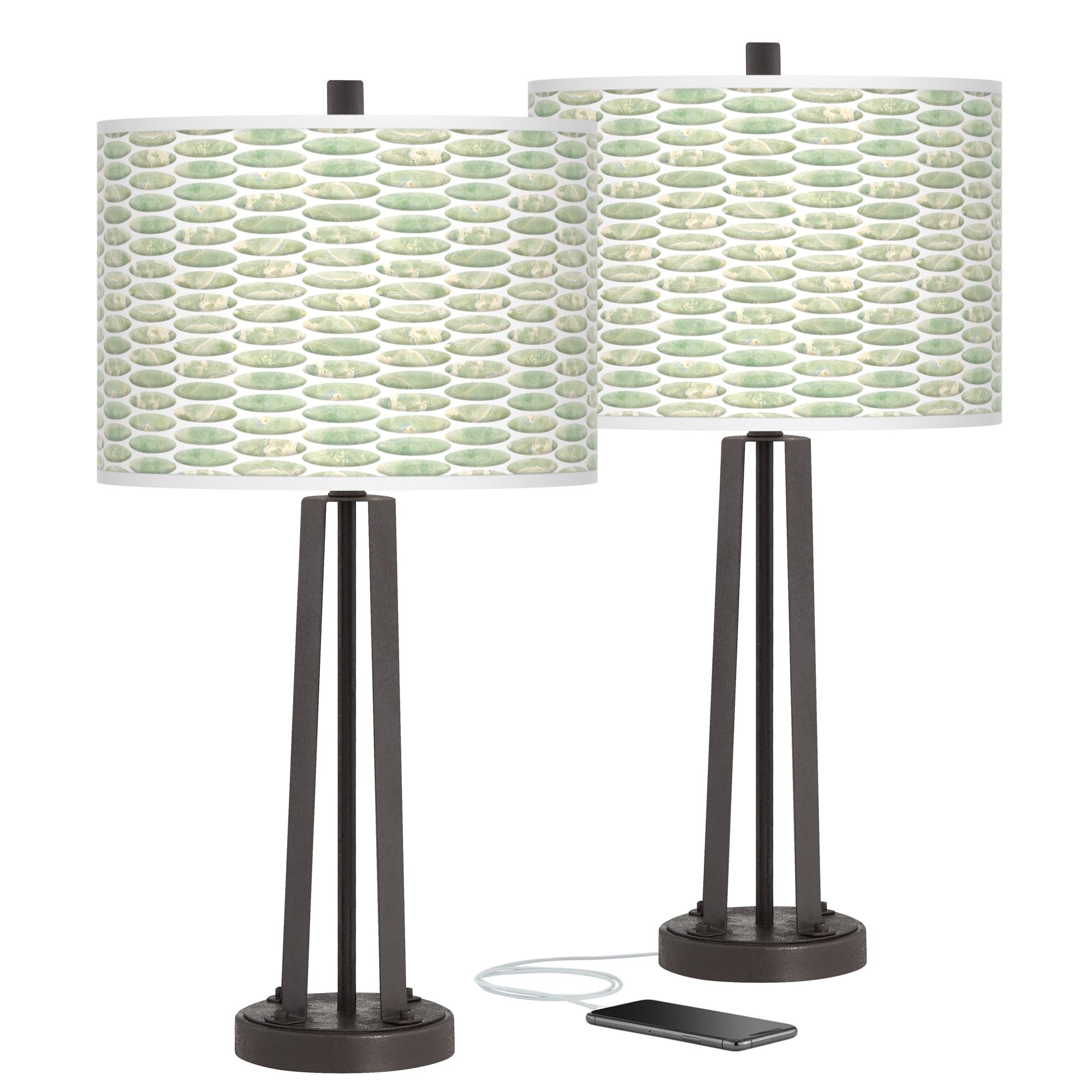 Retro Cobblestones Susan Dark Bronze USB Table Lamps Set of 2