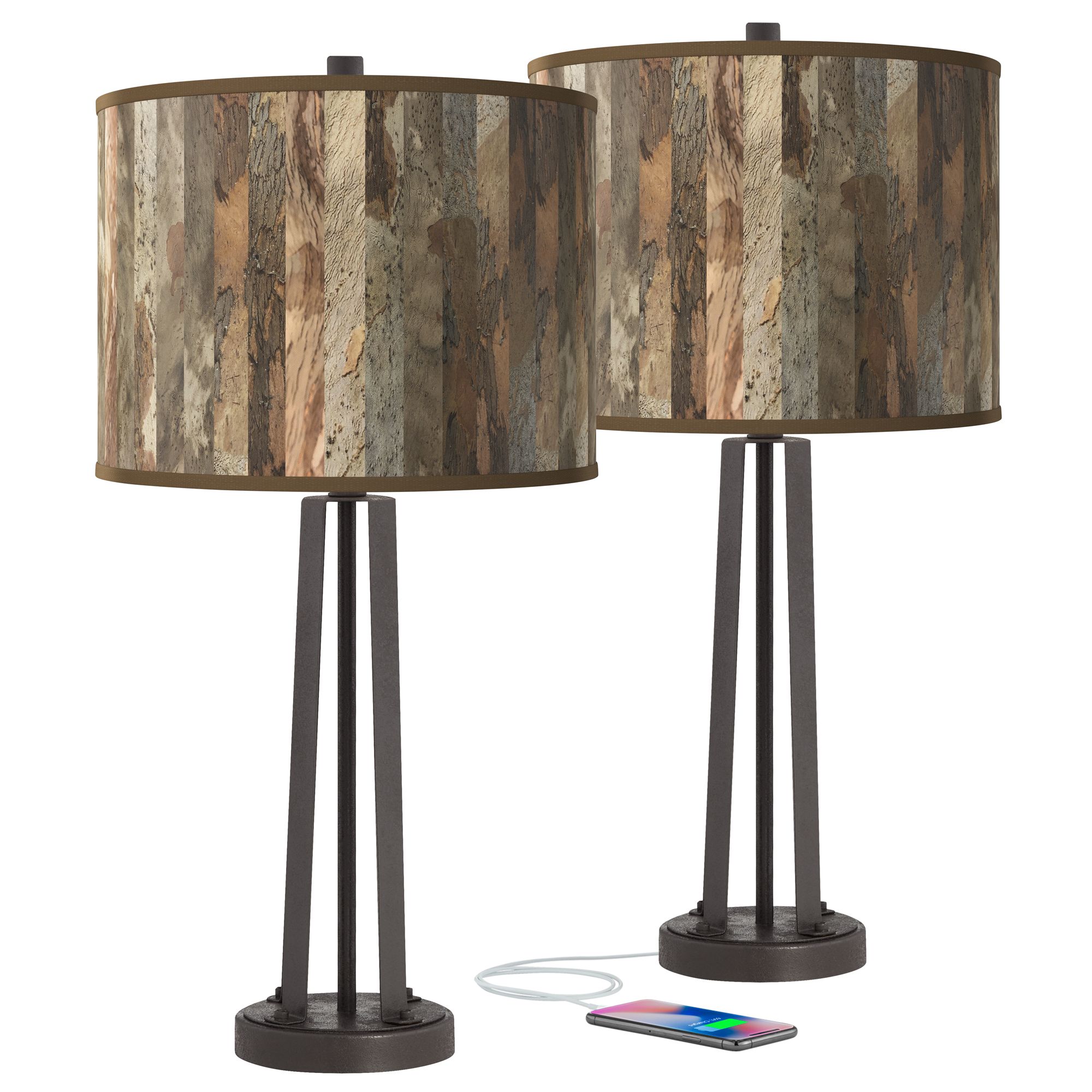 Rustic Woodwork Susan Dark Bronze USB Table Lamps Set of 2