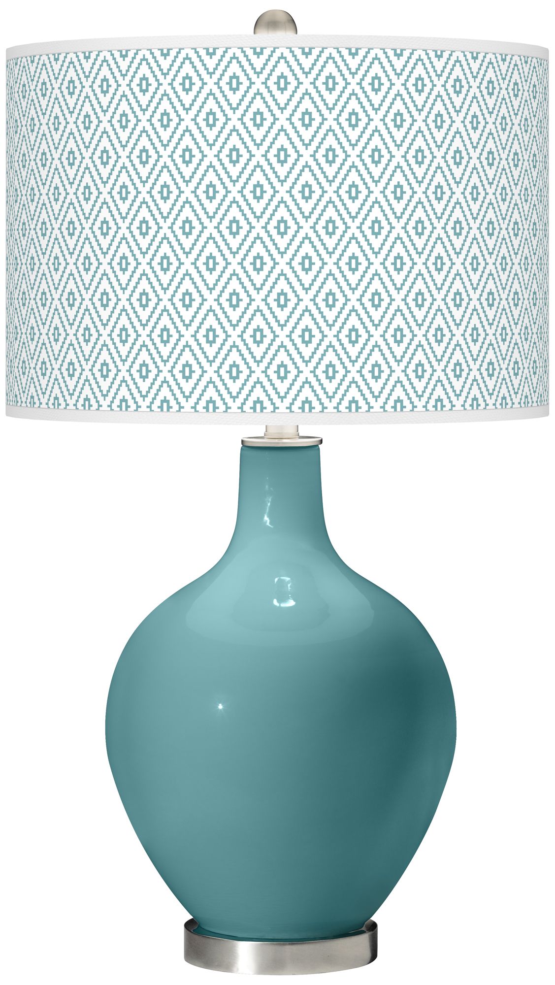 Color Plus Ovo 28 1/2" Diamonds Shade Reflecting Pool Blue Table Lamp