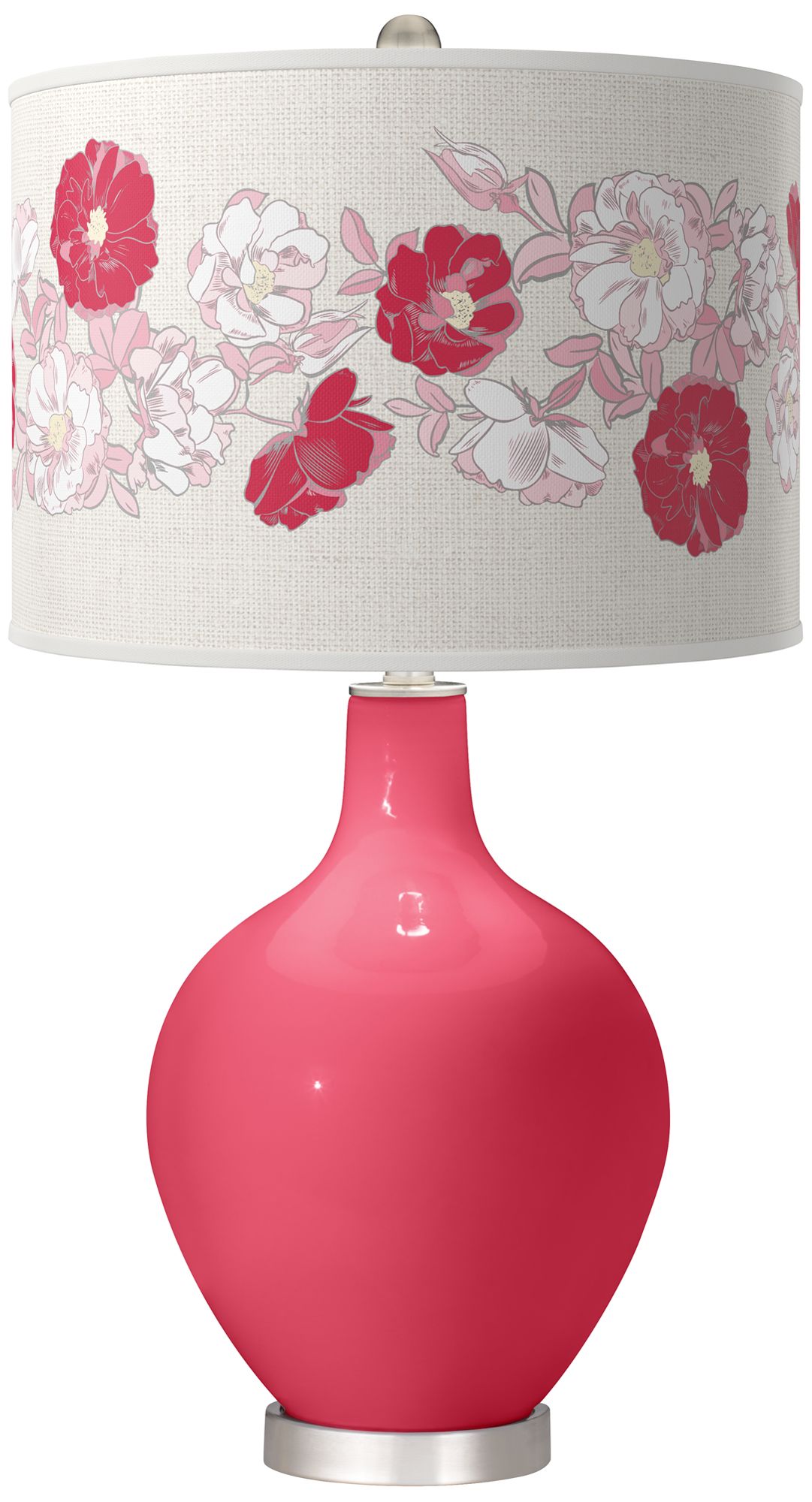Color Plus Ovo Nickel 28 1/2" Rose Bouquet Shade Toile Red Table Lamp
