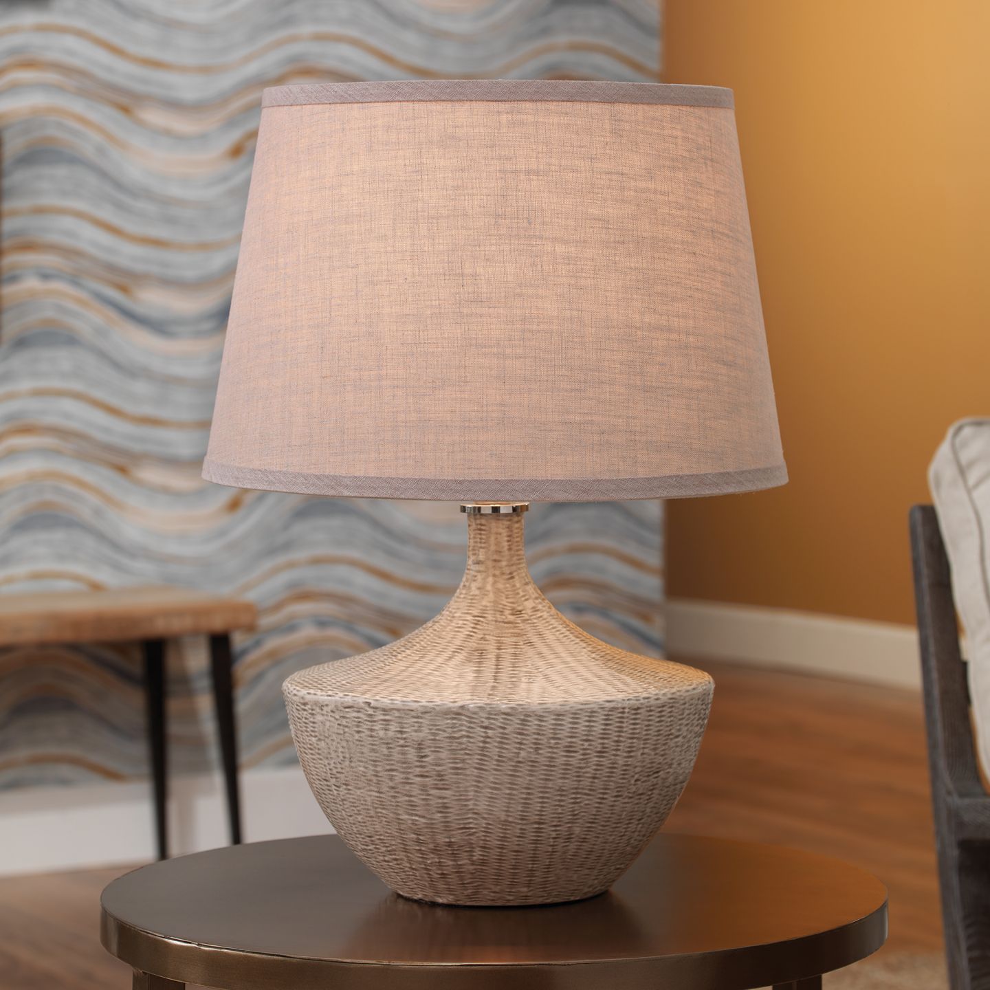 Jamie Young Basketweave Ceramic Table Lamp with Linen Shade