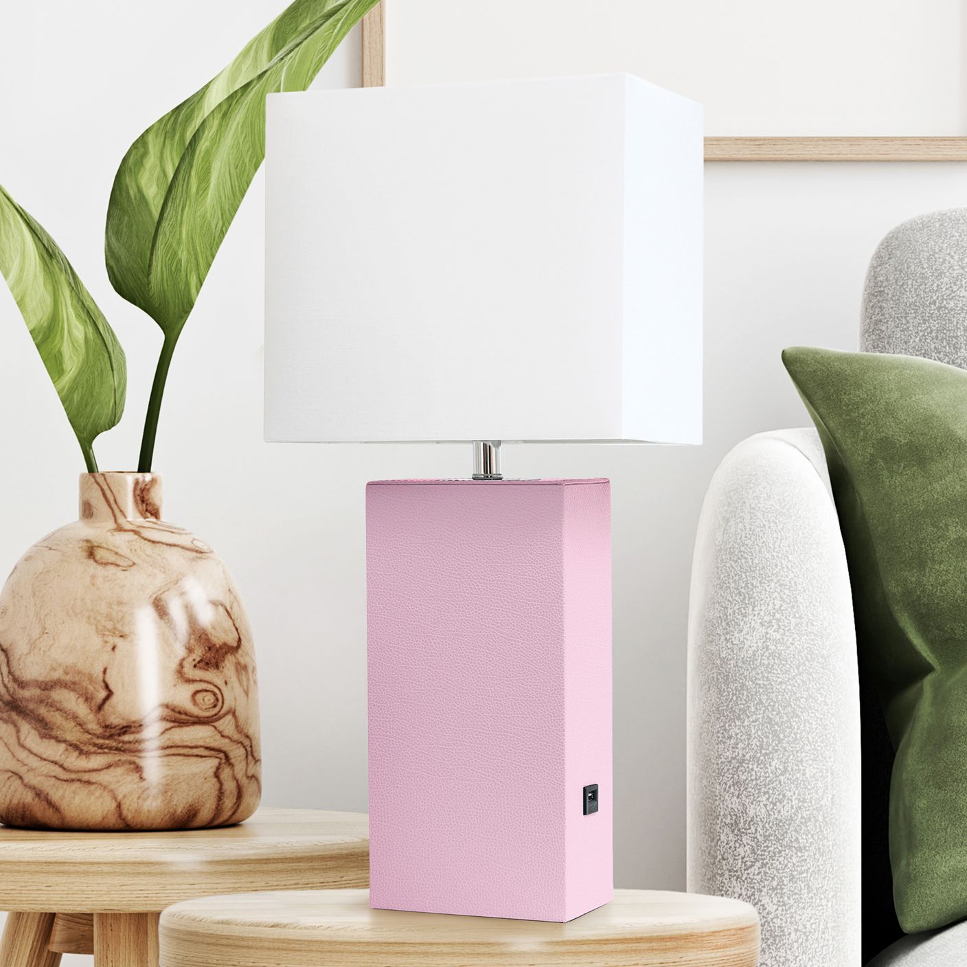 Lalia Home Lexington Pink Leather USB Accent Table Lamp