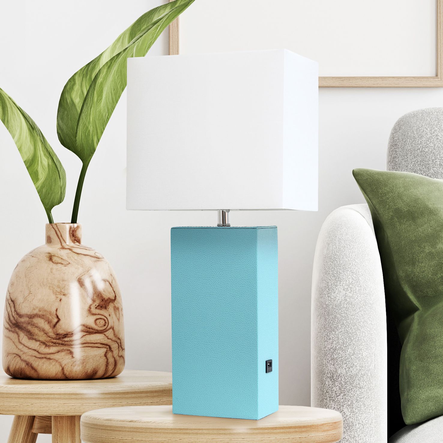 Lalia Home 21" Aqua Blue Leather Coastal Accent Table Lamp with USB