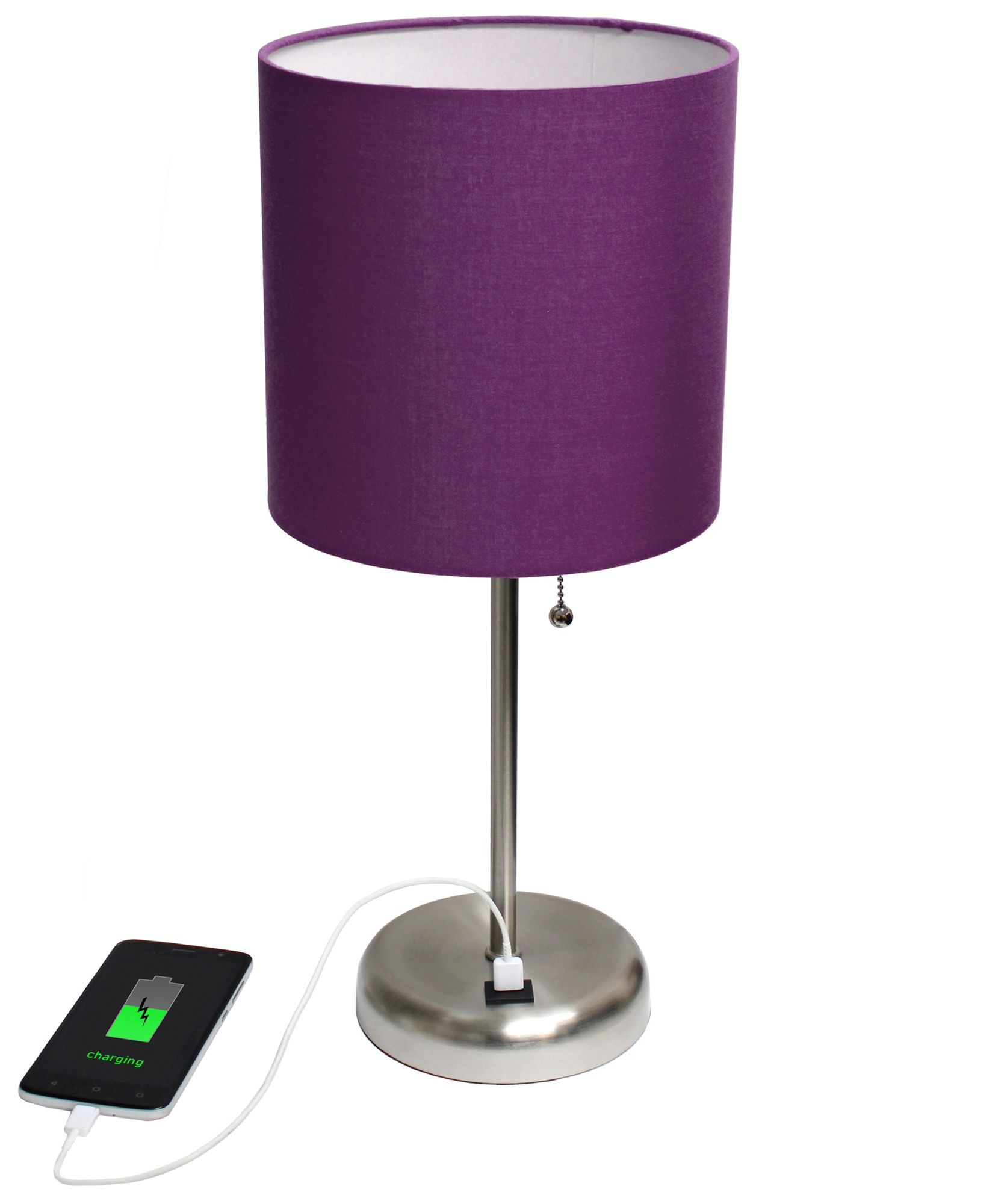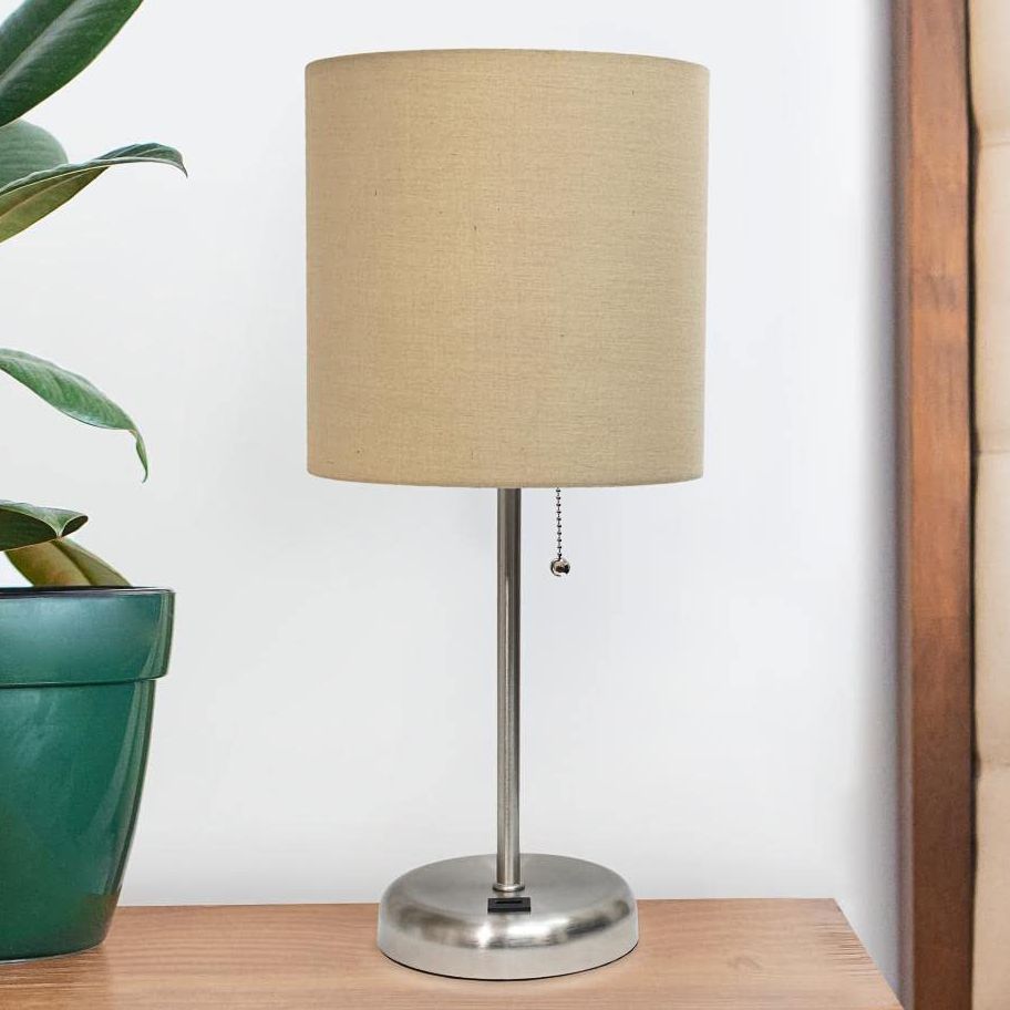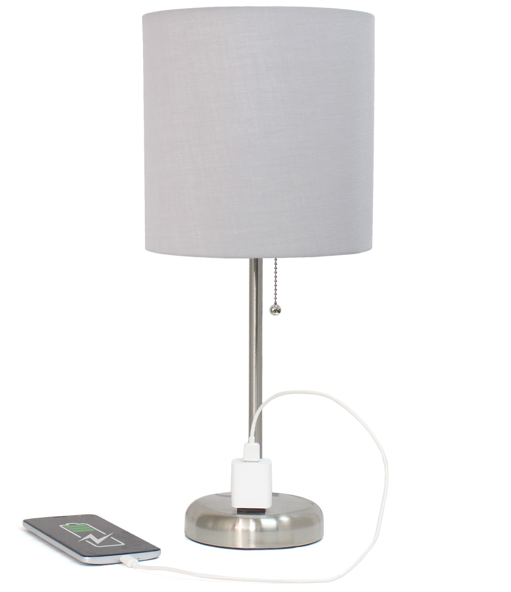 19.5" Brushed Steel Table Lamp with USB Charging Port and LED Bulb Inc