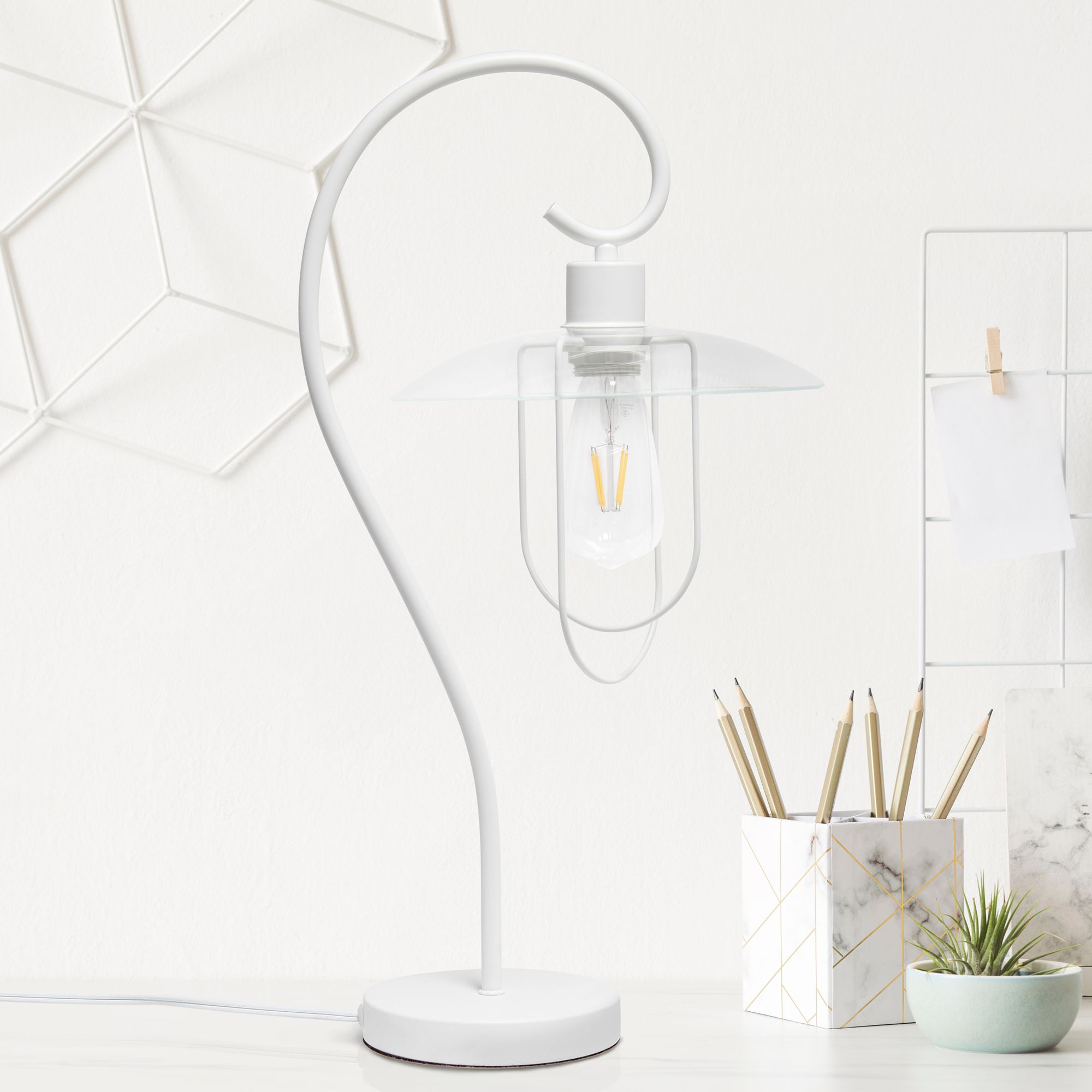 Simple Designs 18.8" Iron Desk Lamp w/ USB Port, White, with LED Bulb