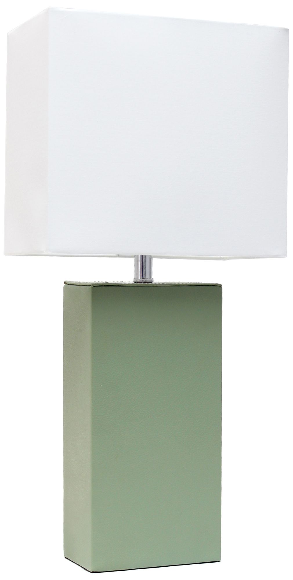Lalia Home Lexington 21" Leather Base Table Lamp, Sage Green