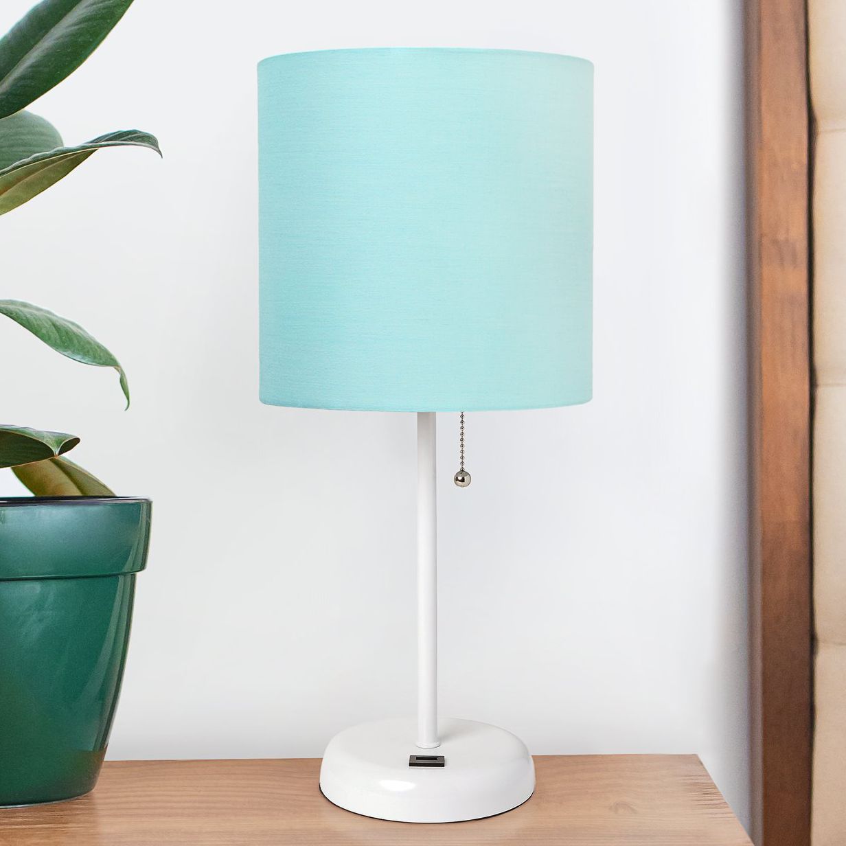 LimeLights 19 1/2"H White Stick Table Lamp with Aqua Shade and Outlet