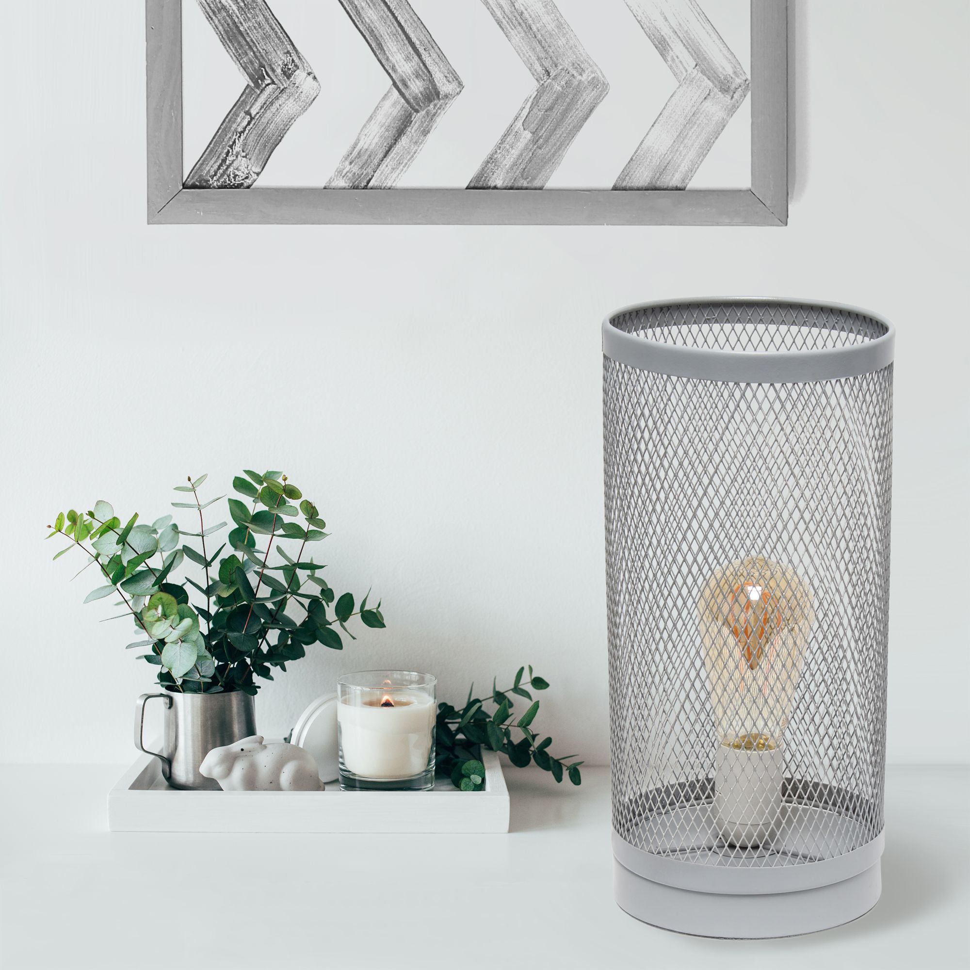 Simple Designs 12 3/4"H Gray Mesh Cylinder Accent Table Lamp