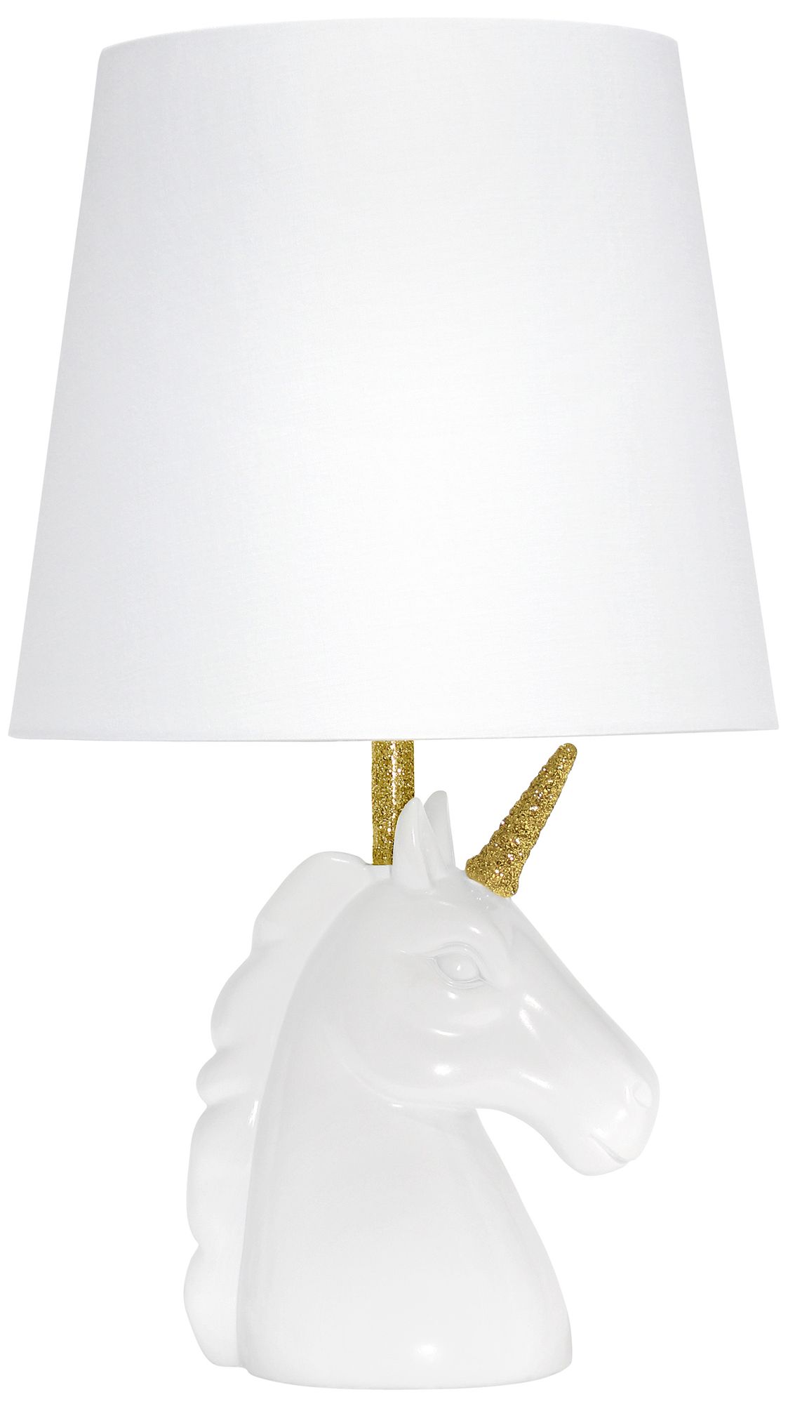 Simple Designs 15.5" Glitter Unicorn Lamp, White & Gold Glitter