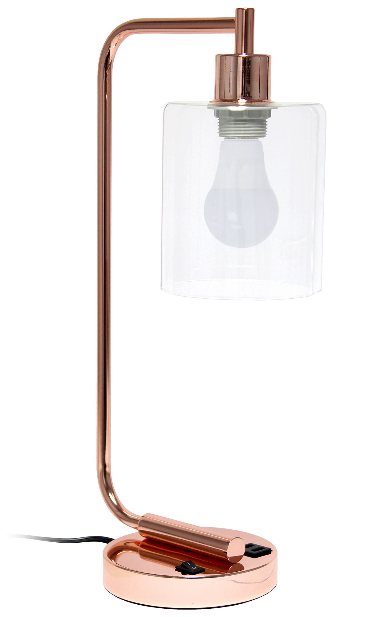 Simple Designs 18.8" Iron Desk Lamp w/ USB Port, Rose Gold, with LED B