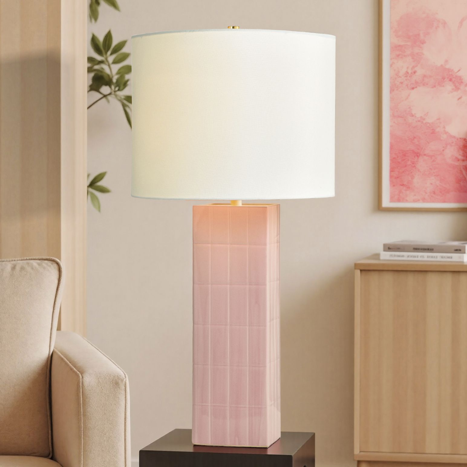 Tamara Day Belinda 34"H Rose Quartz Stone Table Lamp With Off-White Sh