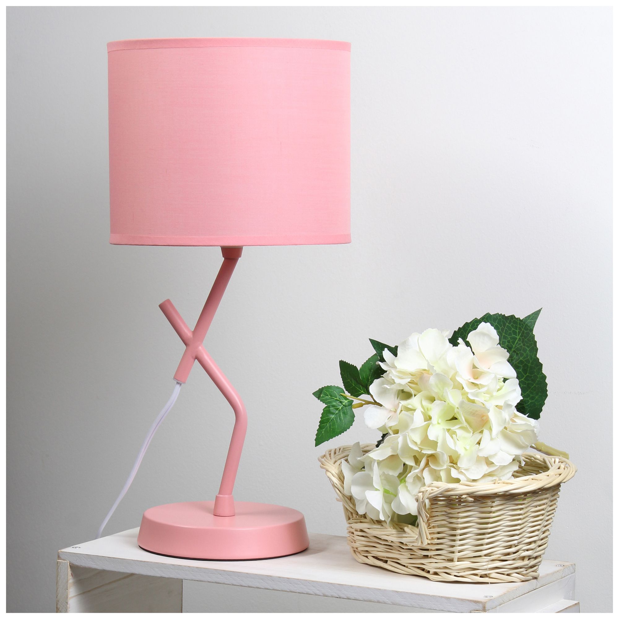 Simple Designs 17.13" Metal Modern Table Lamp, Drum Fabric Shade, Pink