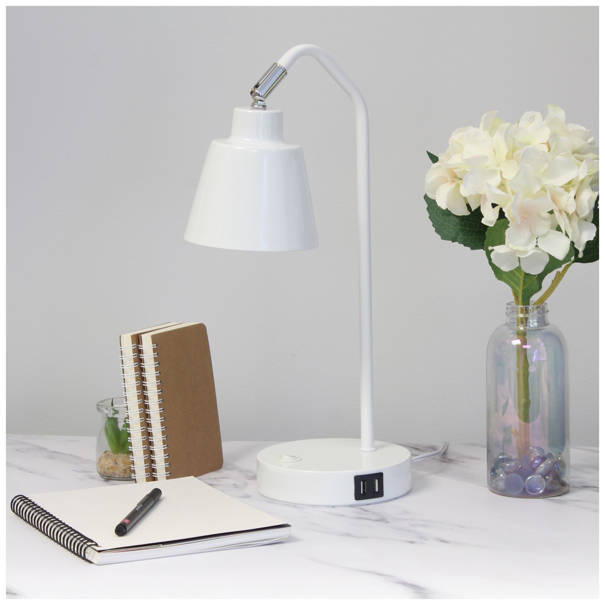 Simple Designs 16" Sleek Adj Metal Desk Task Lamp, Dual USB Ports, White