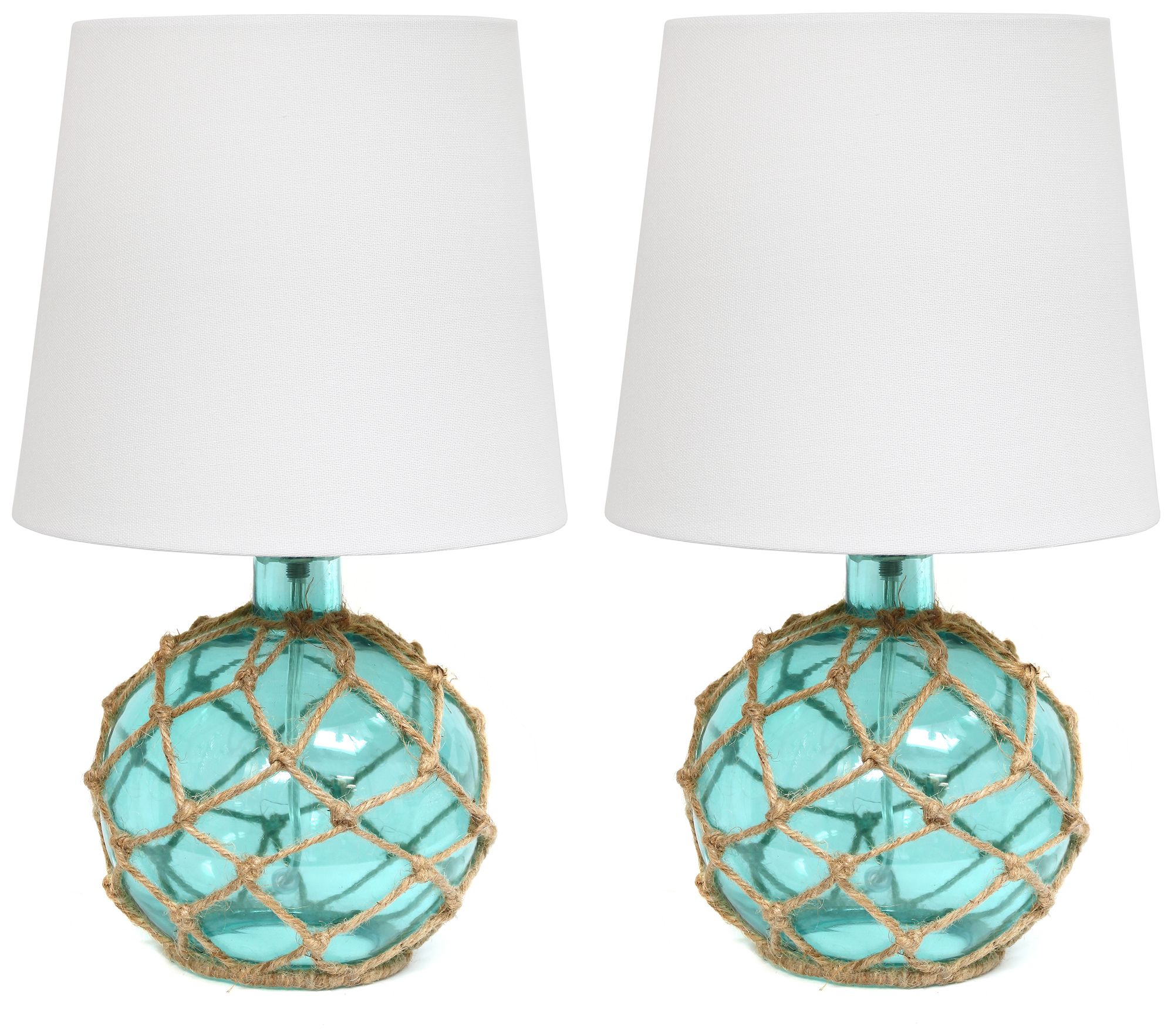 14.75" Buoy Rope 2-Pack Netted Coastal Ocean Sea Glass Table Lamp, Aqu