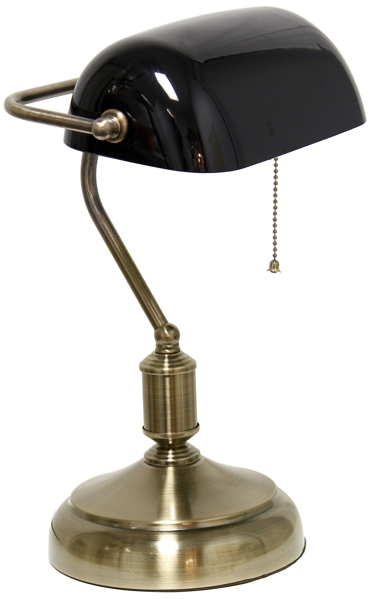15" Timeless Antique Nickel Bankers Table Lamp, Black Shade