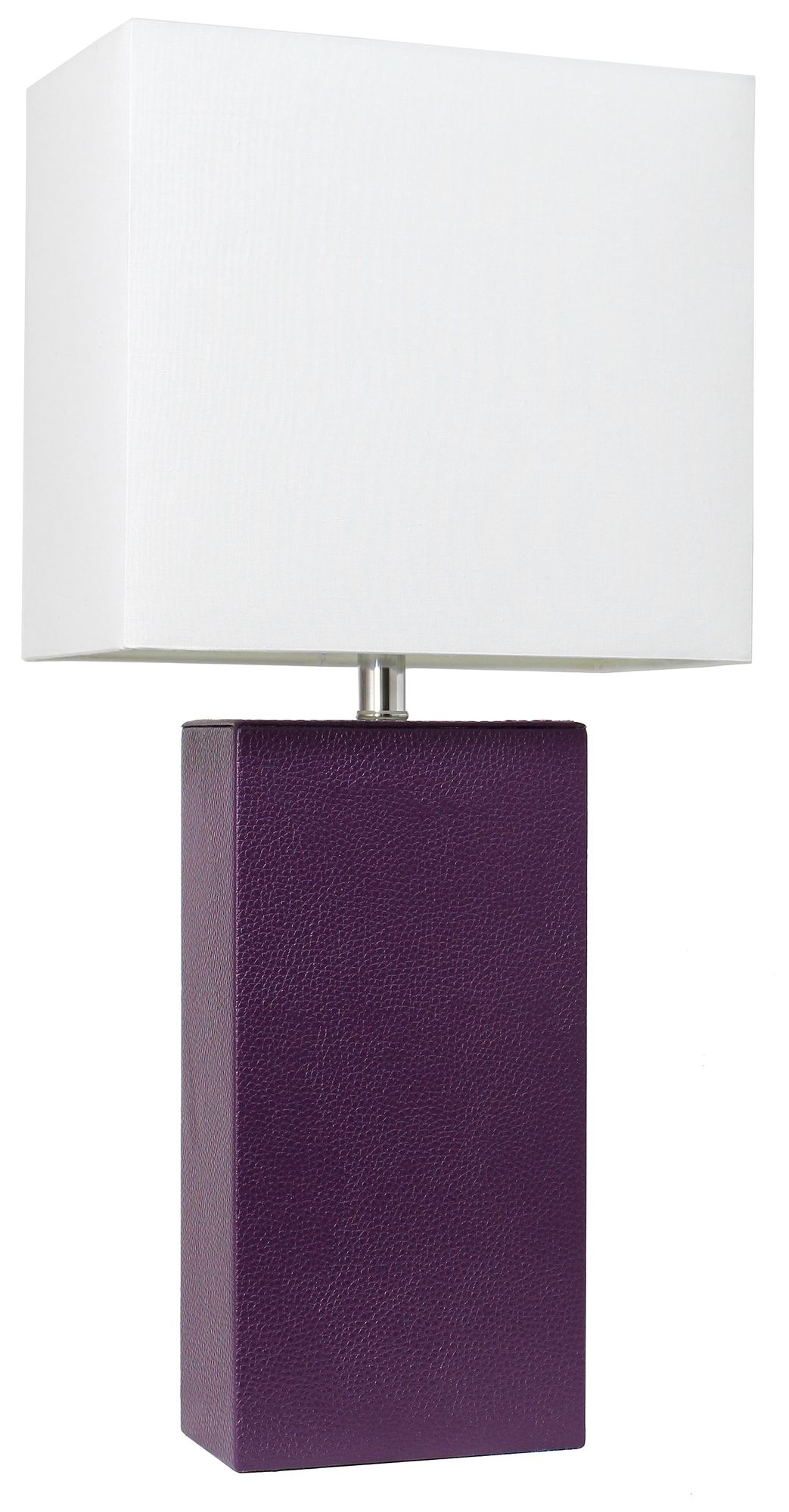 Elegant Designs 21" Leather Wrapped Table Lamp, Eggplant, With LED Bul