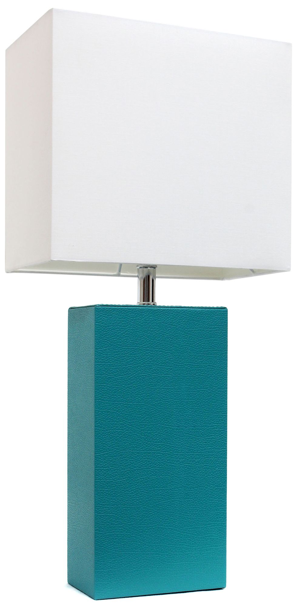 Elegant Designs 21" Leather Wrapped Table Lamp, Teal, With LED Bulb