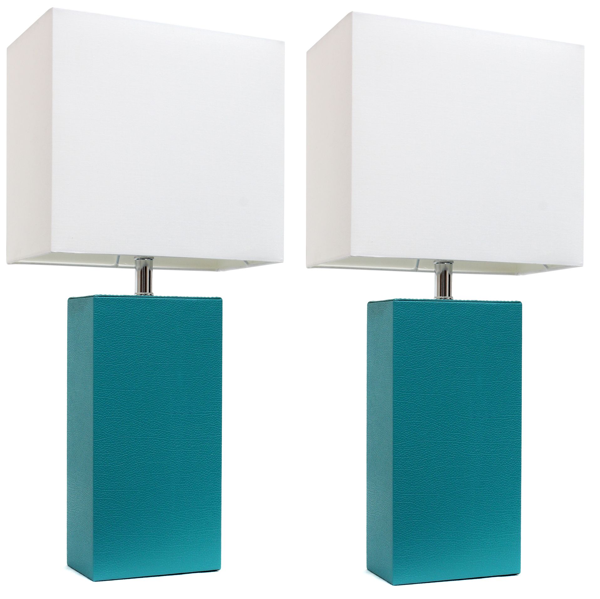 Lexington 21" 2-Pack Leather Base Table Lamp Set, Teal