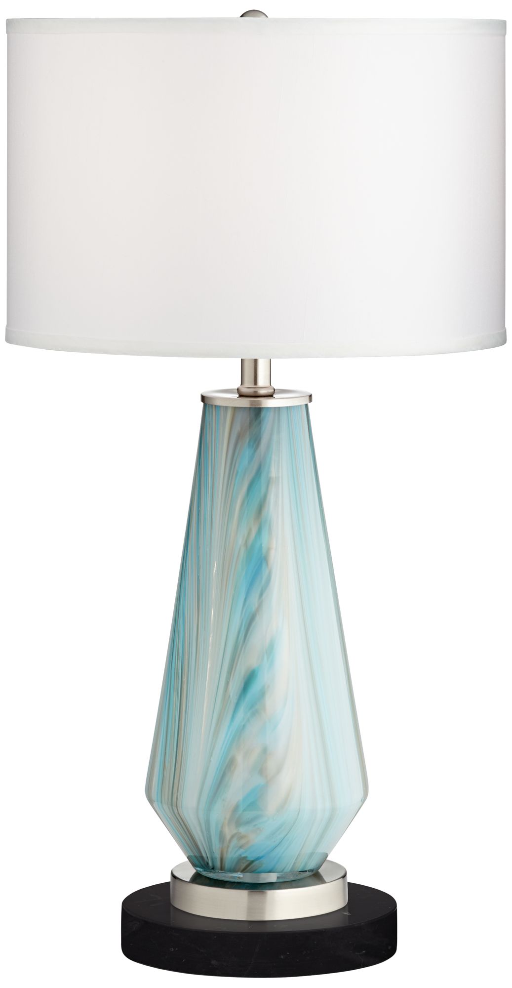 Possini Euro Jaime 26" Blue Gray Table Lamp with Black Marble Riser