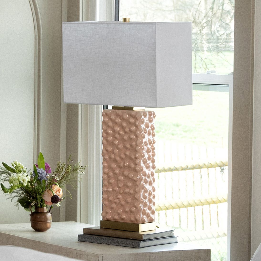 Tamara Day Edmund 30"H Brass & Pearl Blush Table Lamp With Off-White Shade