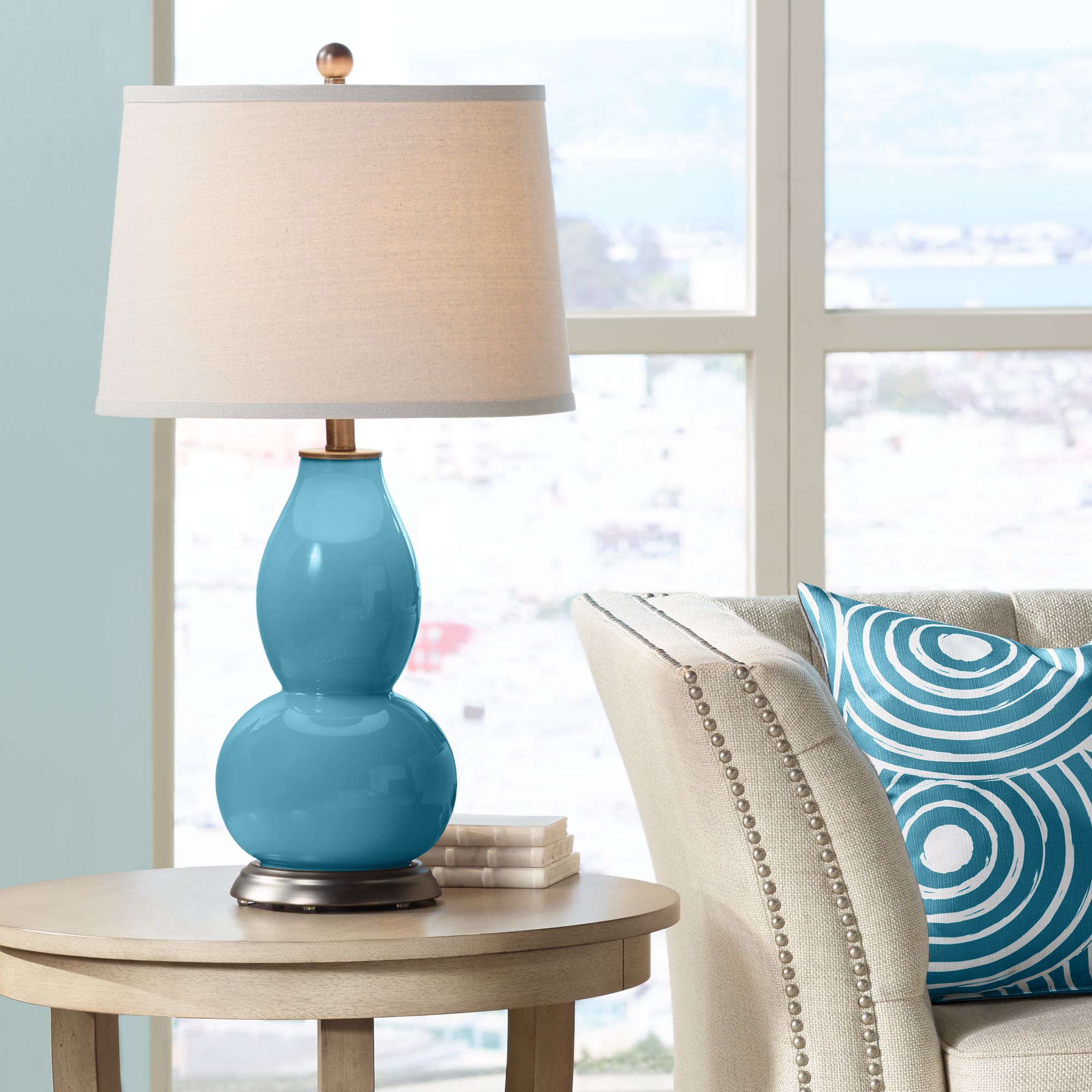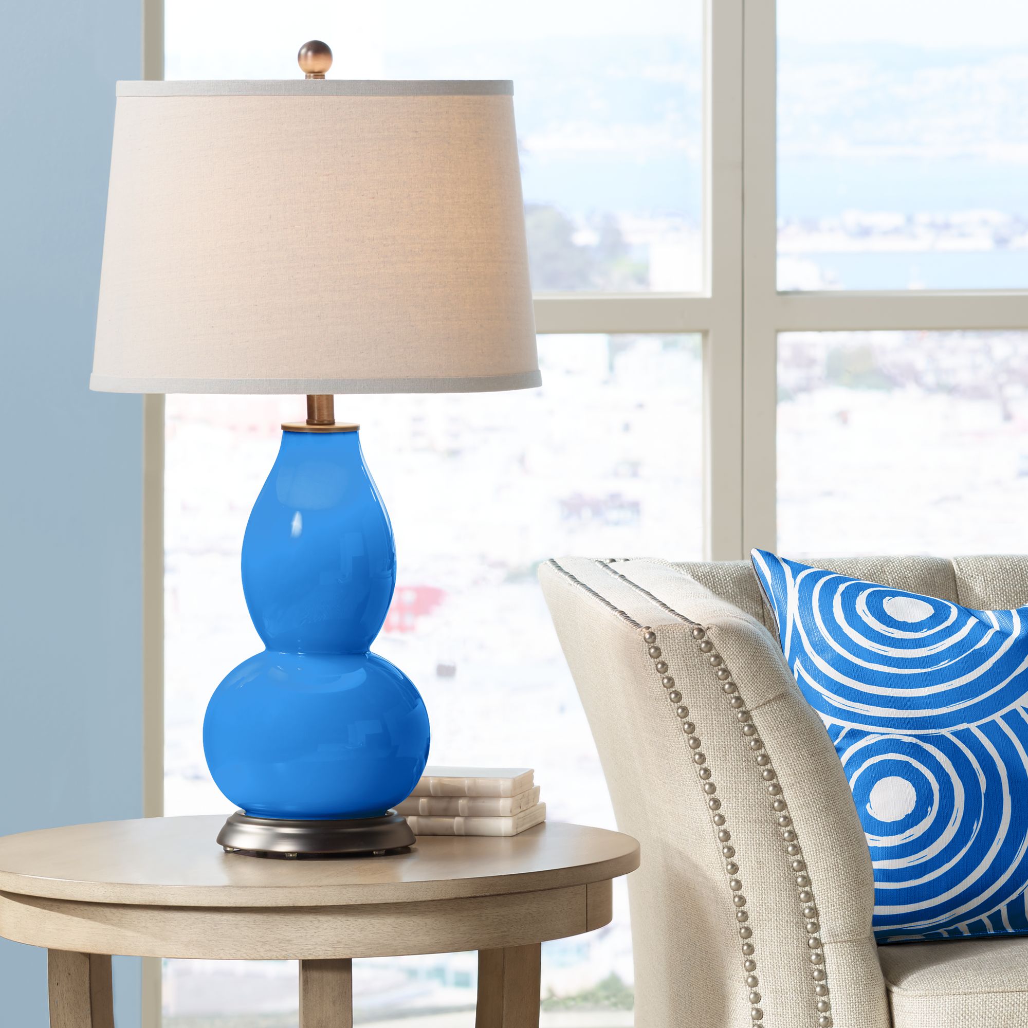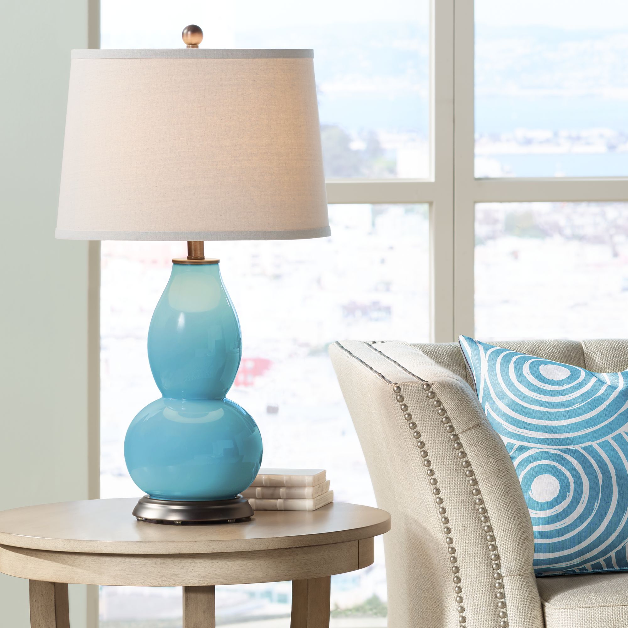 Color Plus Double Gourd 28 3/4" White Shade and Placid Blue Table Lamp