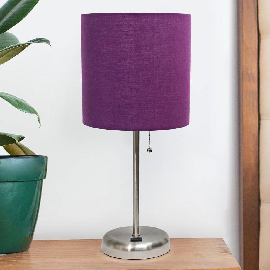 Oslo 19 1/2"H Steel Outlet Table Desk Lamp with Purple Shade