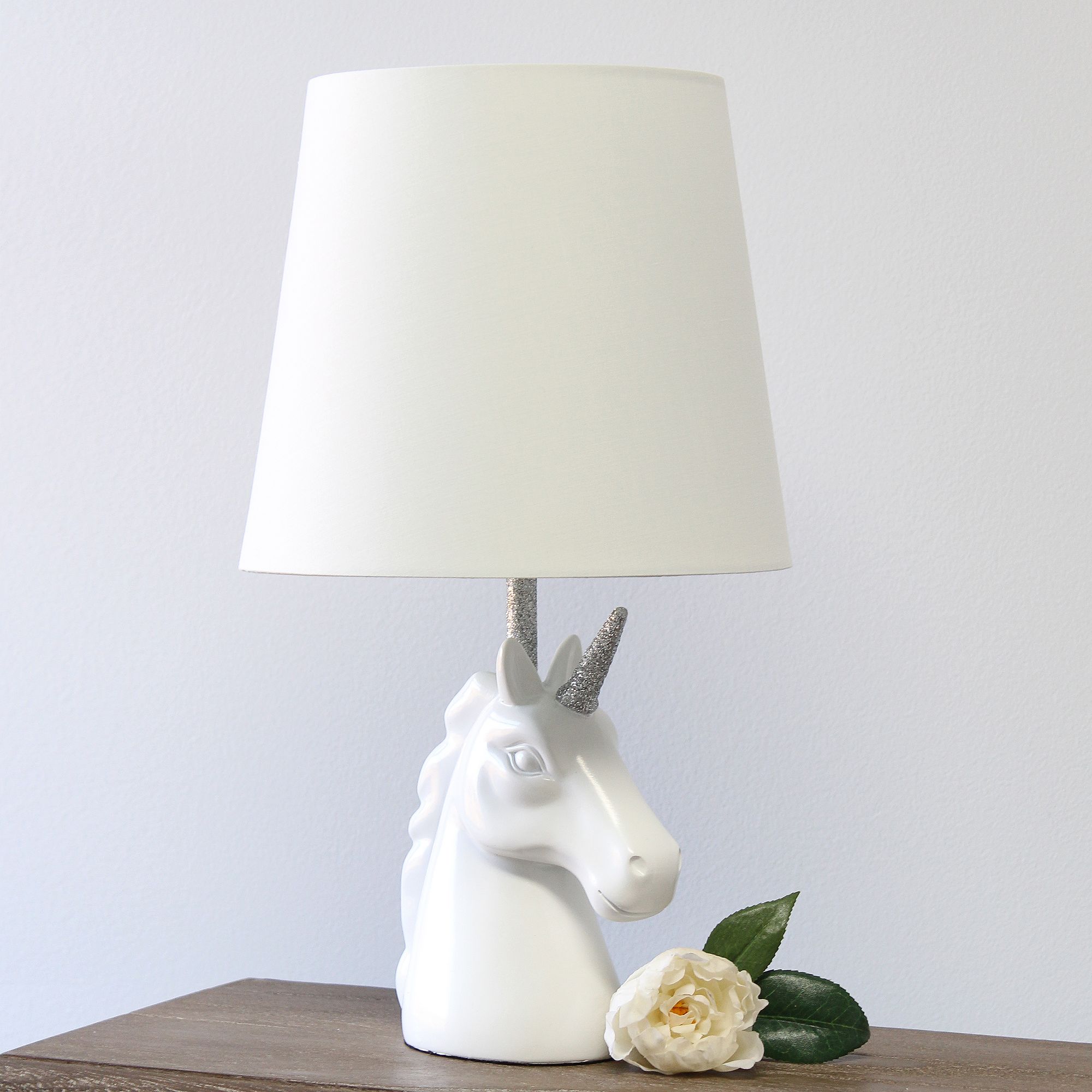 Simple Designs 16" High Silver Glitter and White Unicorn Table Lamp