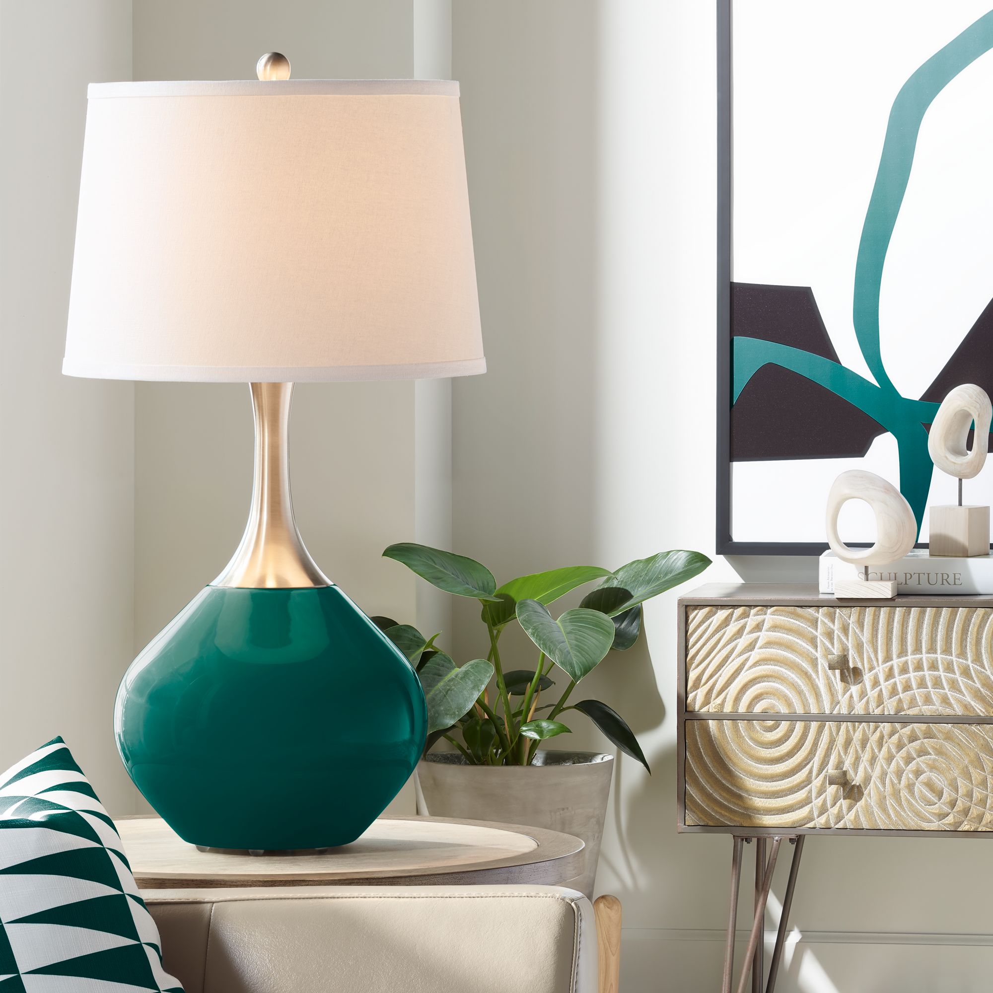 Color Plus Wexler 31" White Shade Linen Base Table Lamp