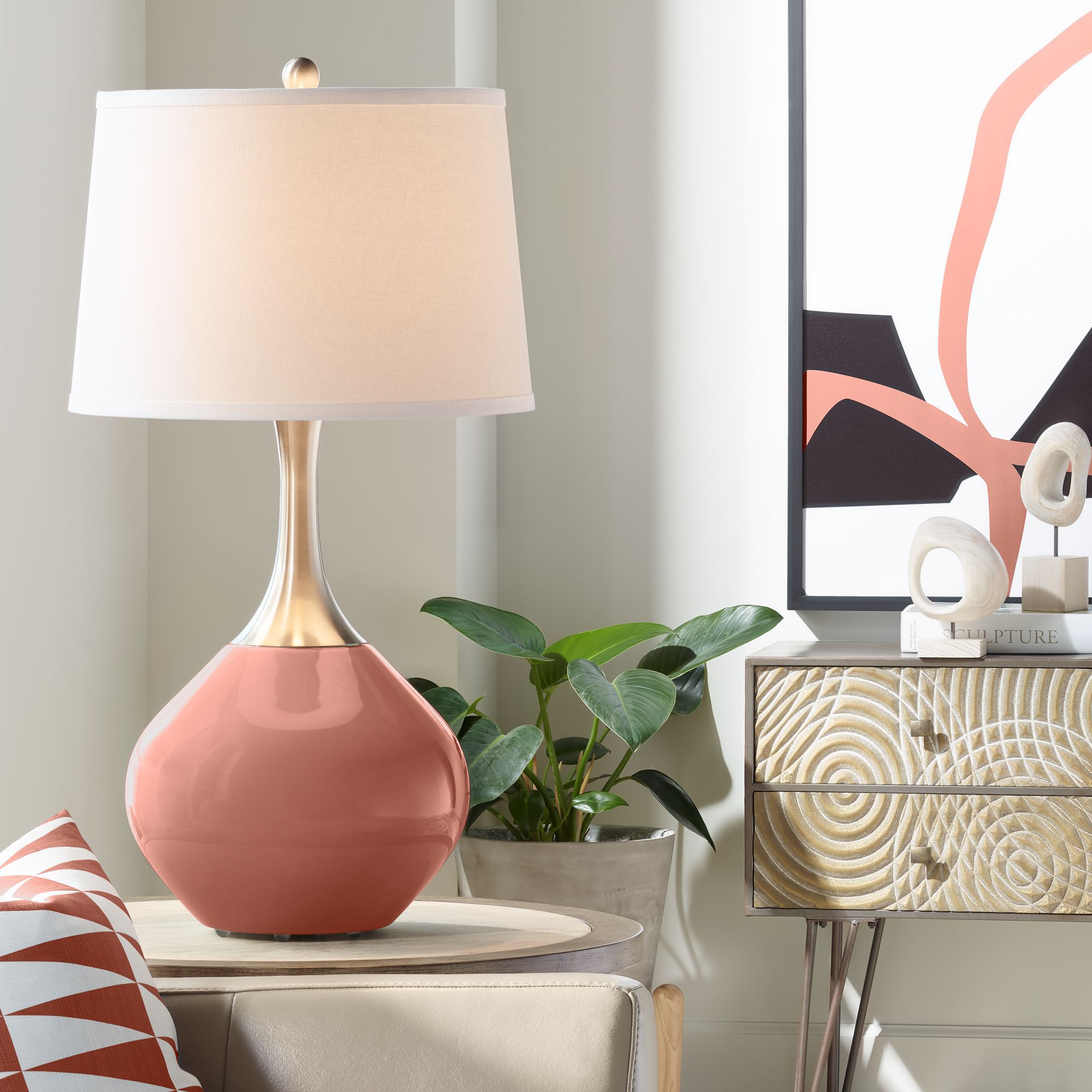 Color Plus Wexler 31" White Shade Baked Clay Brown Modern Table Lamp