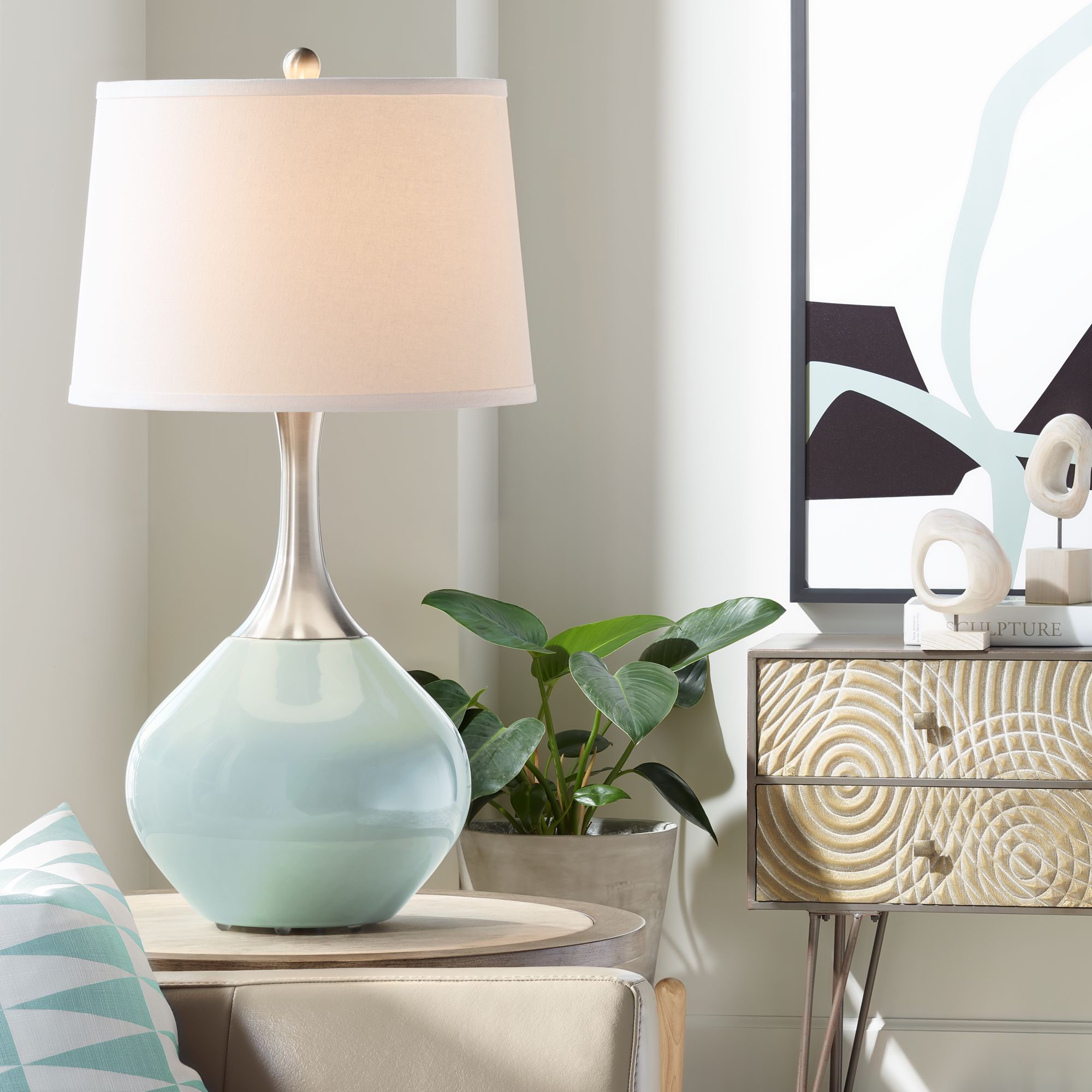 River Crest Seafoam Ceramic Table Lamp w/ Taupe Fabric Shade