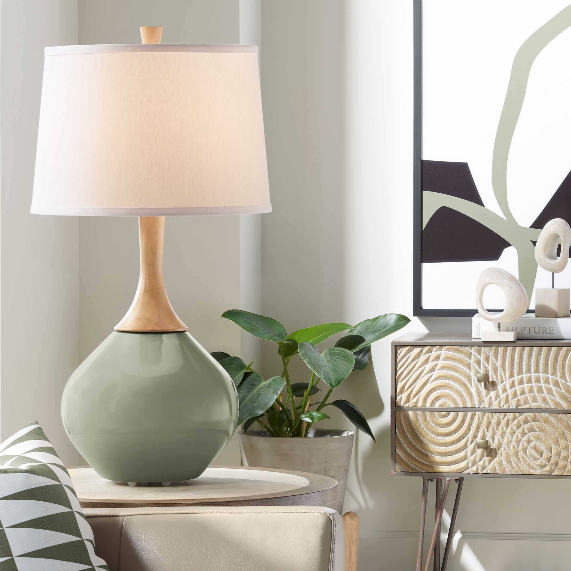 Color Plus Wexler 31" Linen Shade Evergreen Fog Green Table Lamp