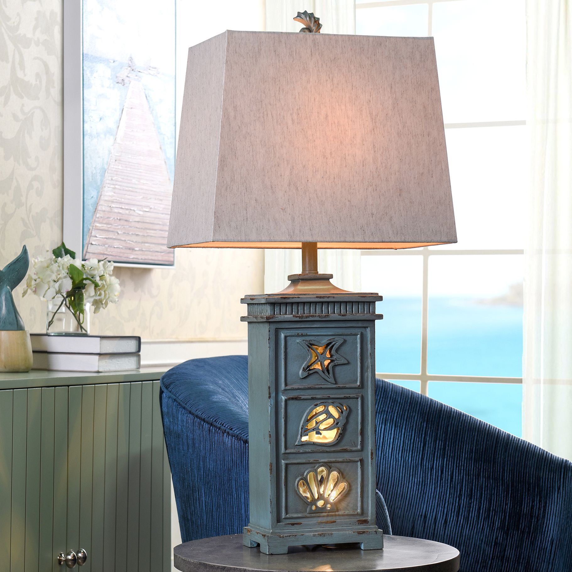 Blue Peacock Fog Linen Shade Spencer Table Lamp