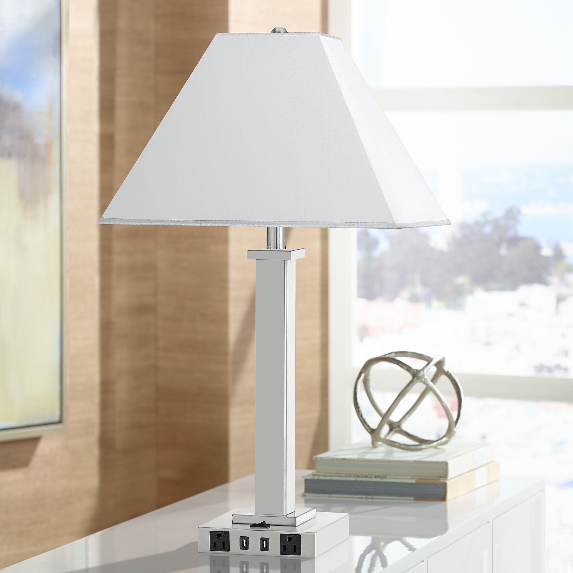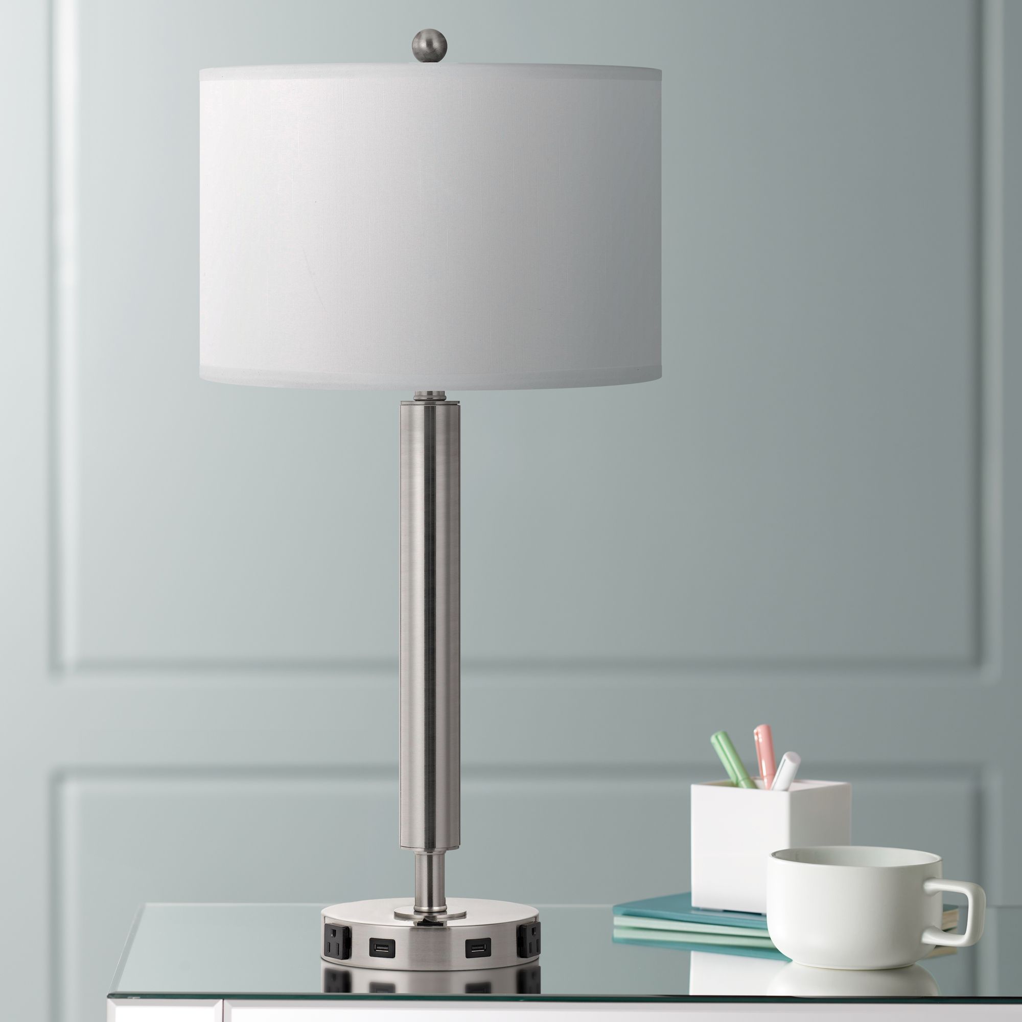 Cal Lighting 28" High Brushed Steel Power Outlet USB Table Lamp