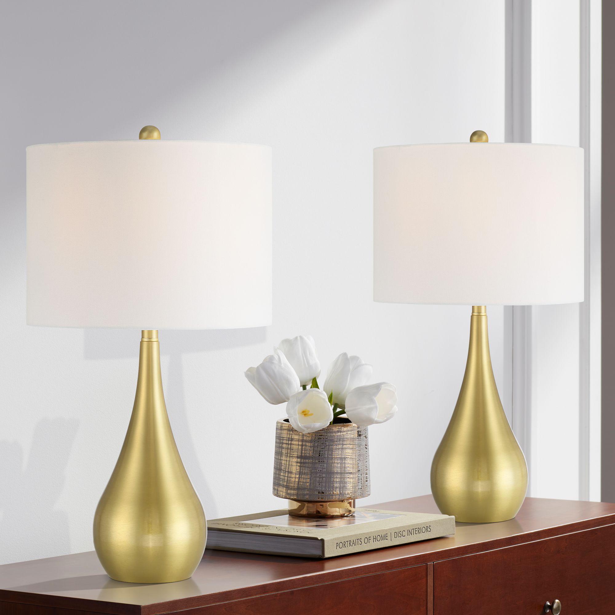 Yolanda 25 1/2" High Gold Teardrop Table Lamp Set