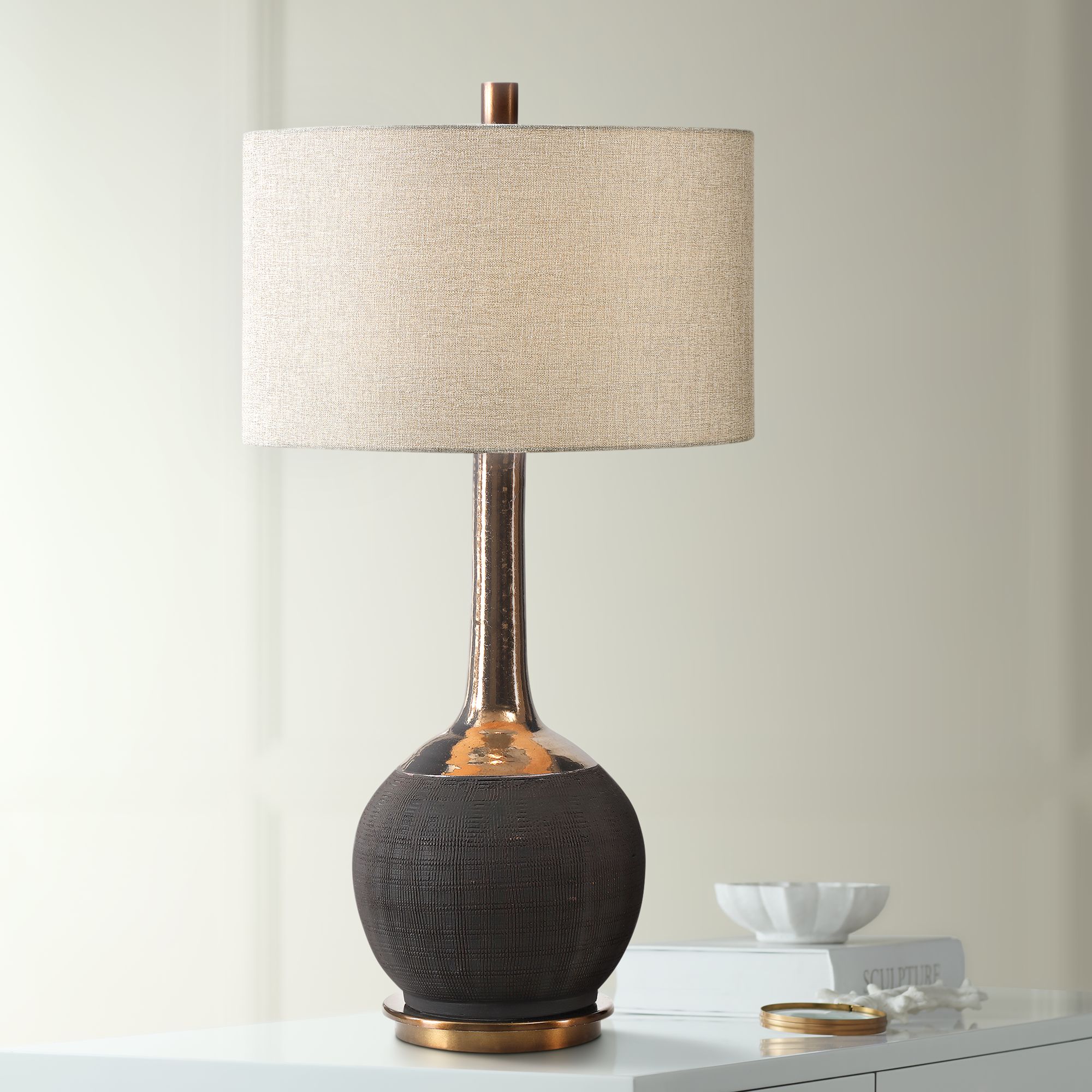 Possini Euro Julius 27" Copper Drip Finish Modern Ceramic Table Lamp