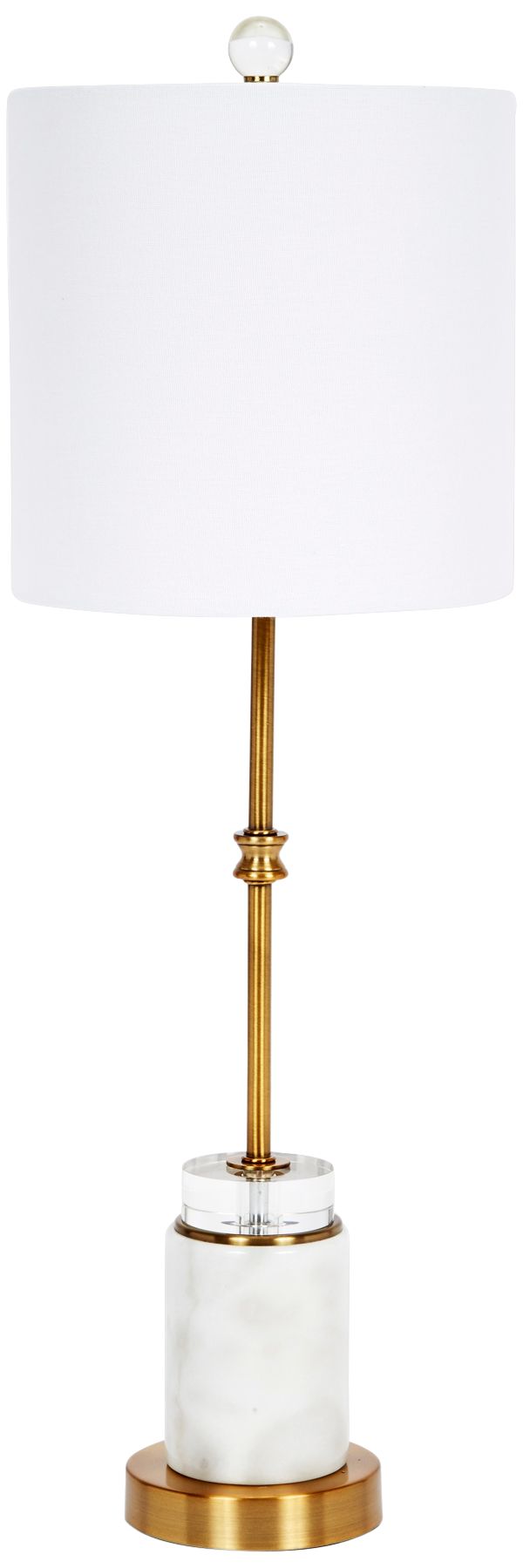 Ana 27" White Marble and Gold Metal Round Buffet Table Lamp