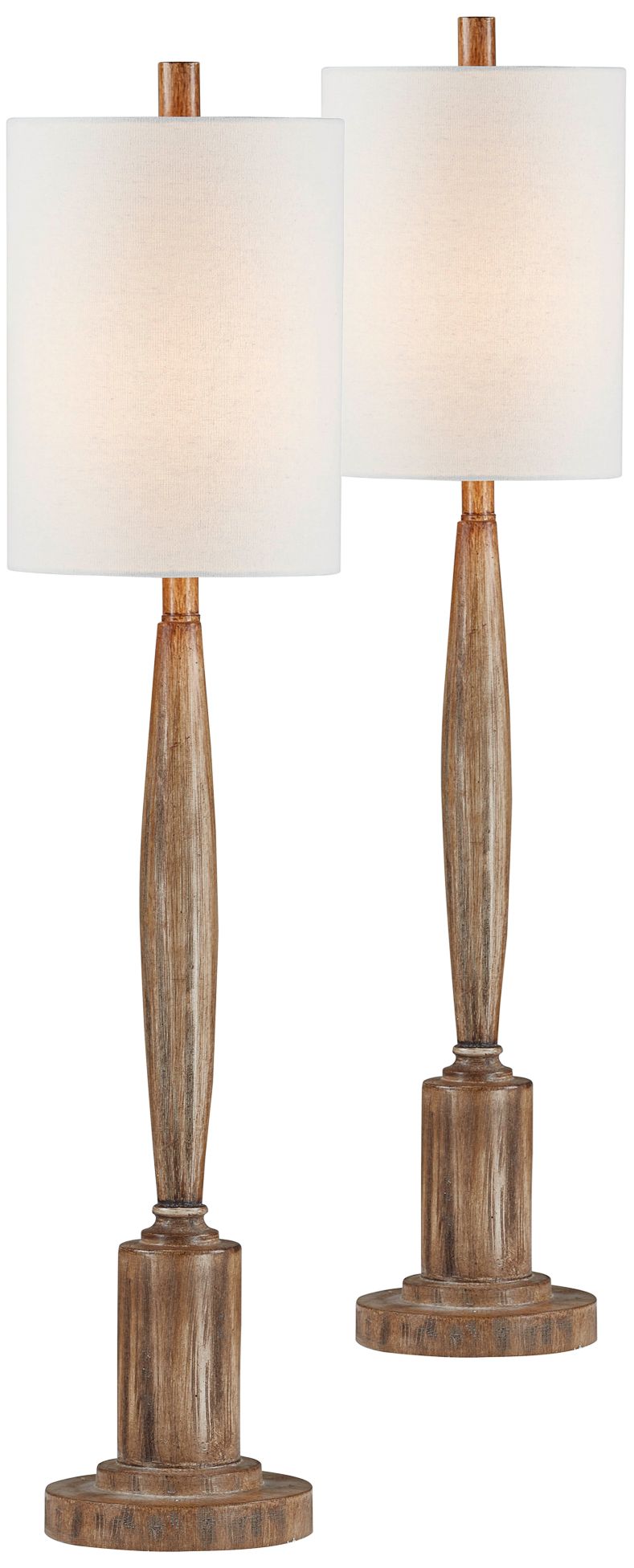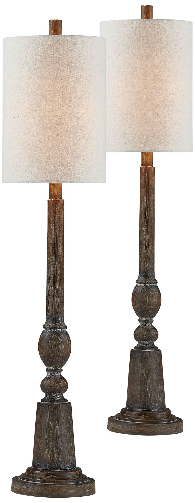 Forty West Soloman 36" Brown Faux Wood Buffet Table Lamps Set of 2
