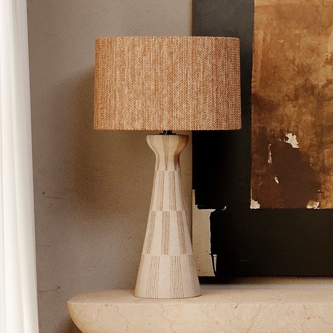 360 Lighting 27 1/2" High Raffia Shade Sand Finish Table Lamp