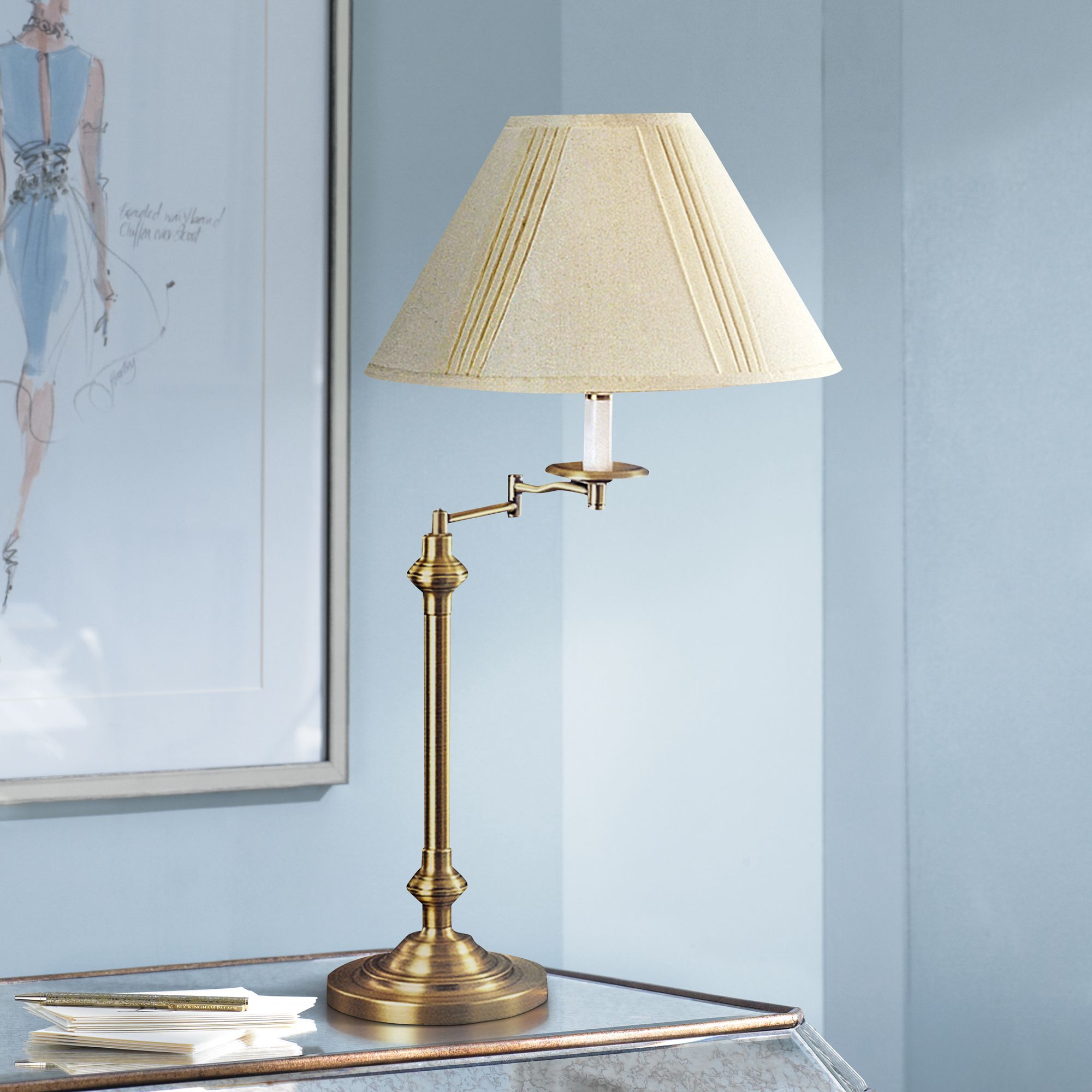 Cal Lighting Bellhaven 29 1/2" Antique Brass Swing Arm Lamp