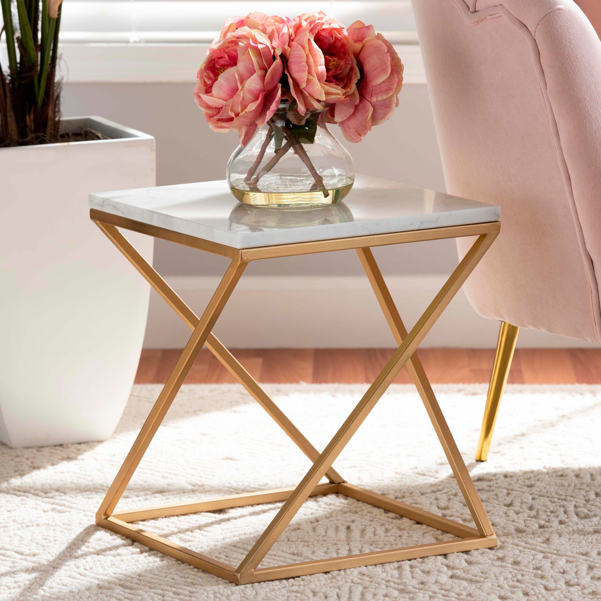 Hadley 13 3/4" Wide White Marble Gold Metal Square End Table