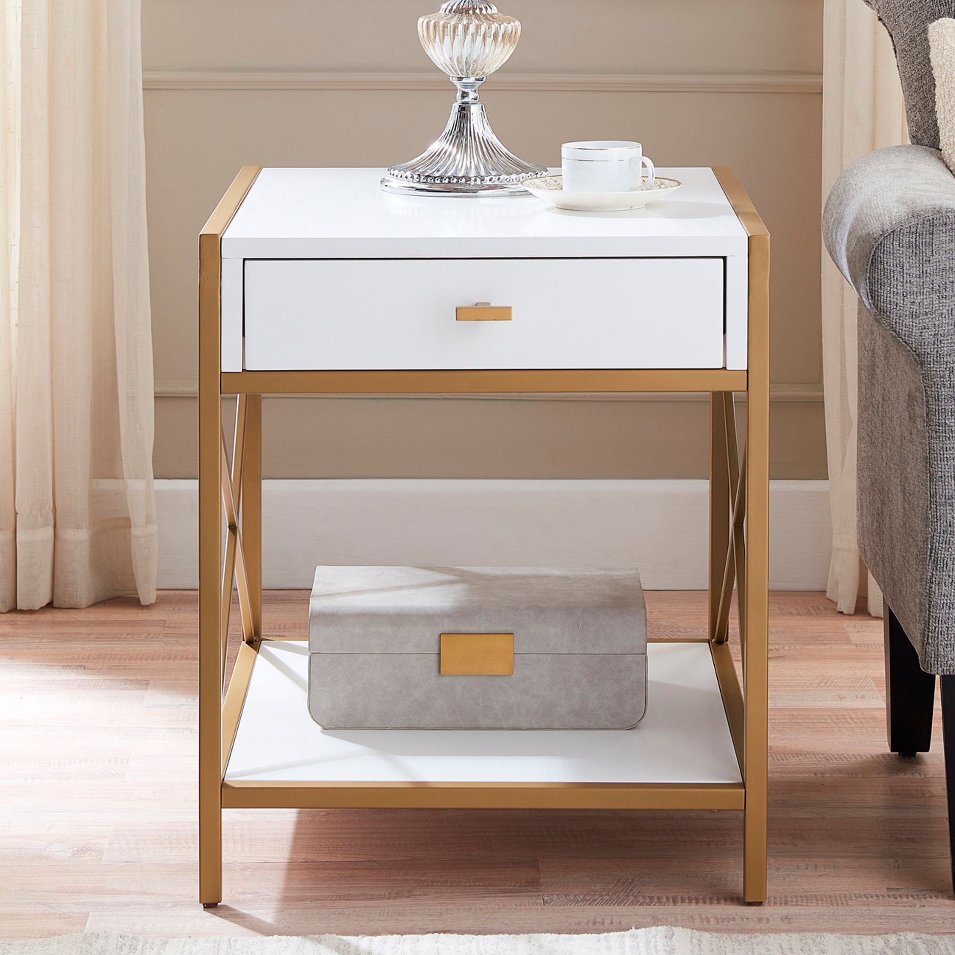 Claudette 24" Wide White Wood Gold Metal 1-Drawer End Table