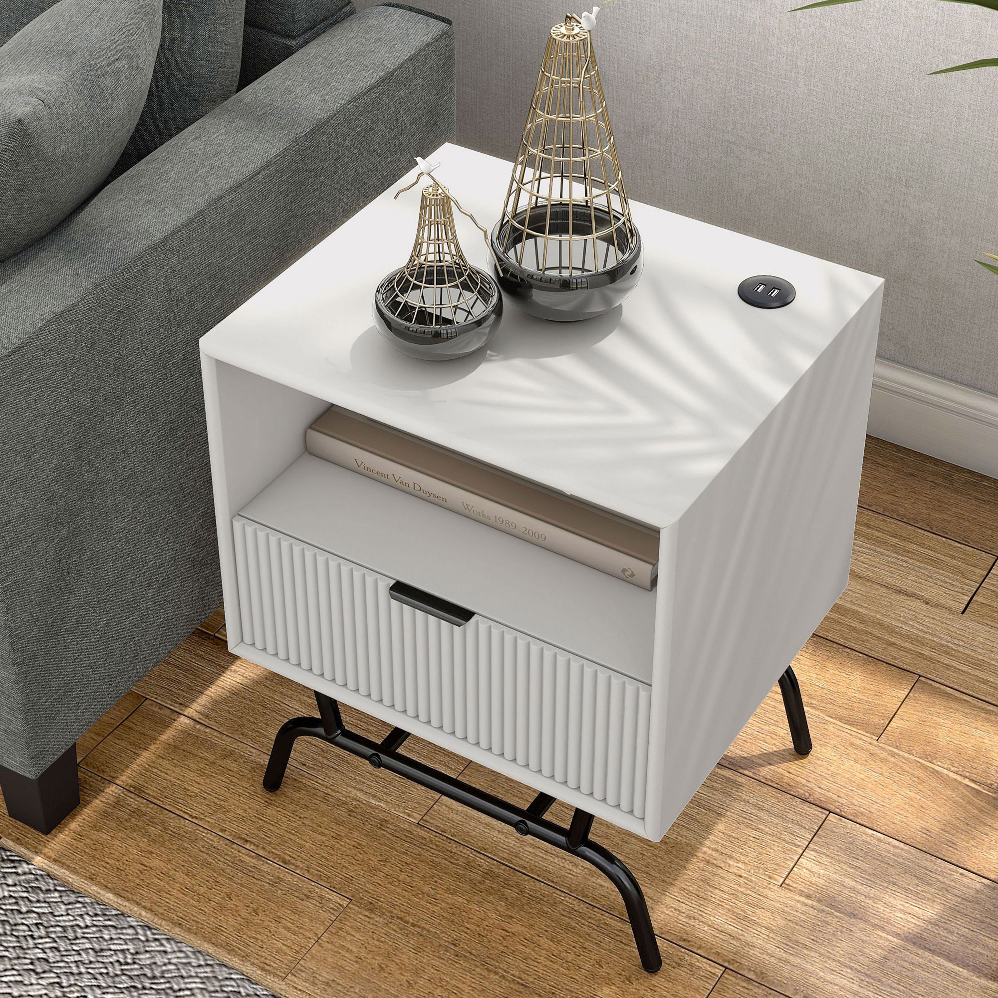 Yastara 18"W White Pure 1-Drawer End Table with USB Ports