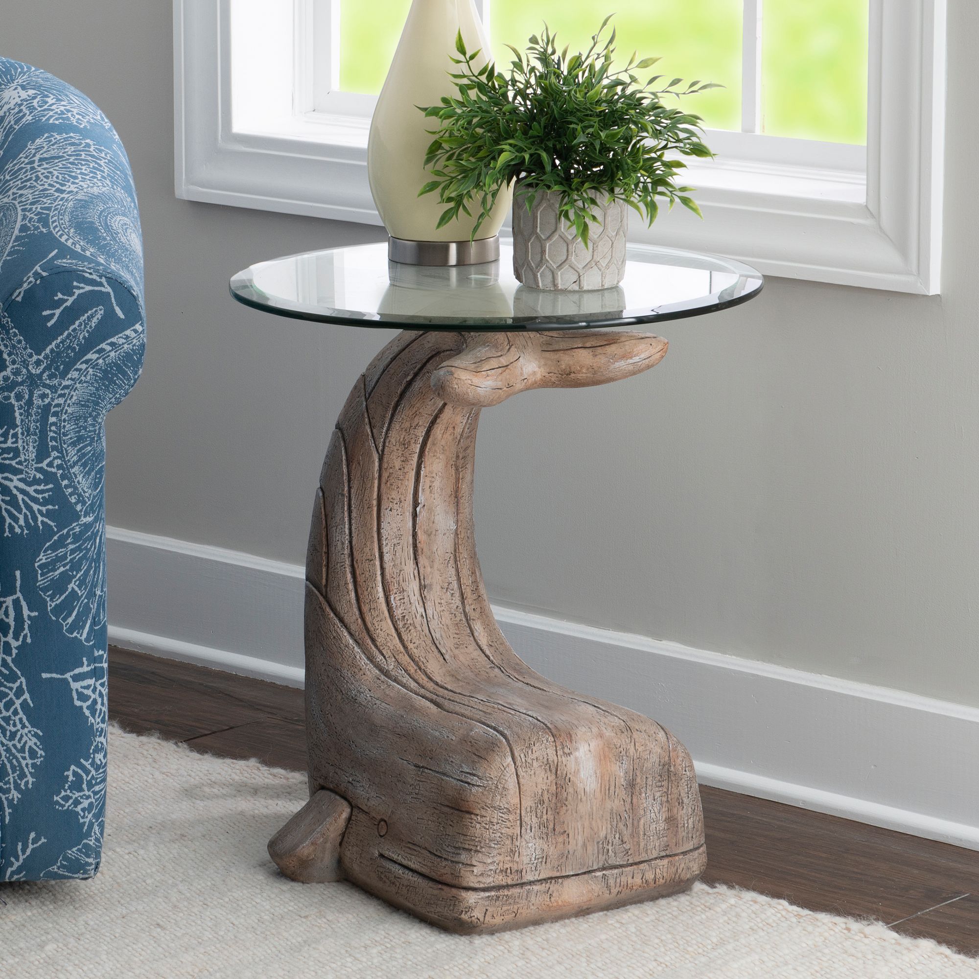 Wally the Whale 20" Wide Distressed White Driftwood Side Table