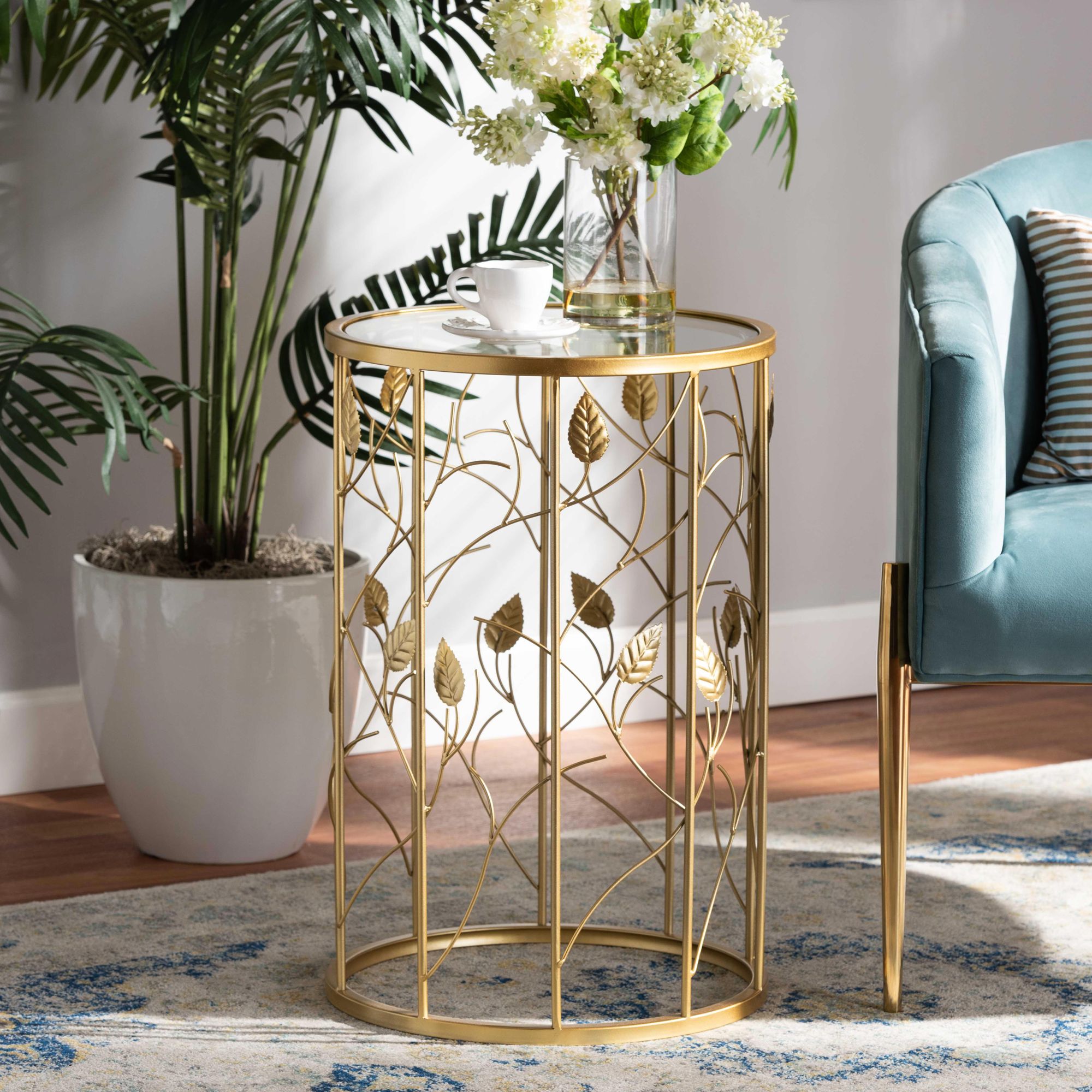 Baxton Studio Anaya 15" Wide Brushed Gold Round End Table