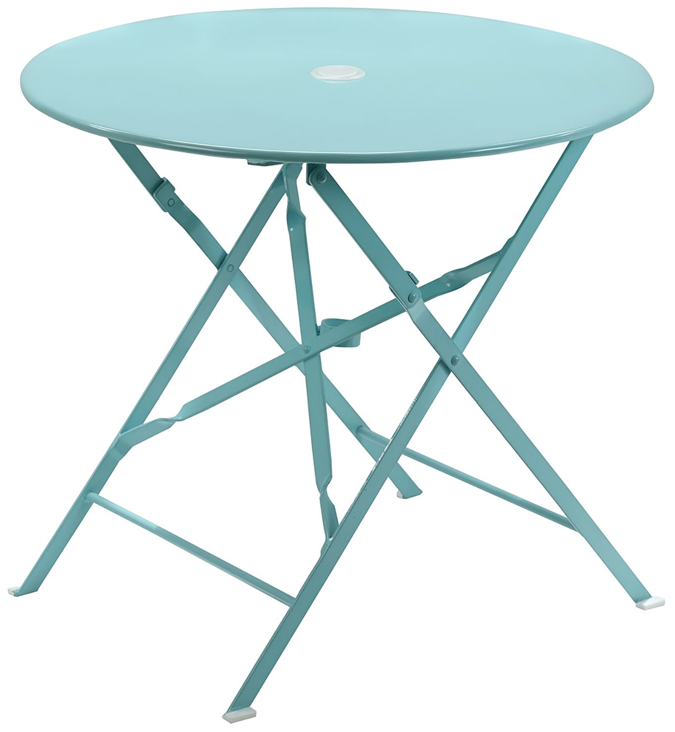Bistro 30" Teal Round Folding Outdoor Table With Umbrella Hole
