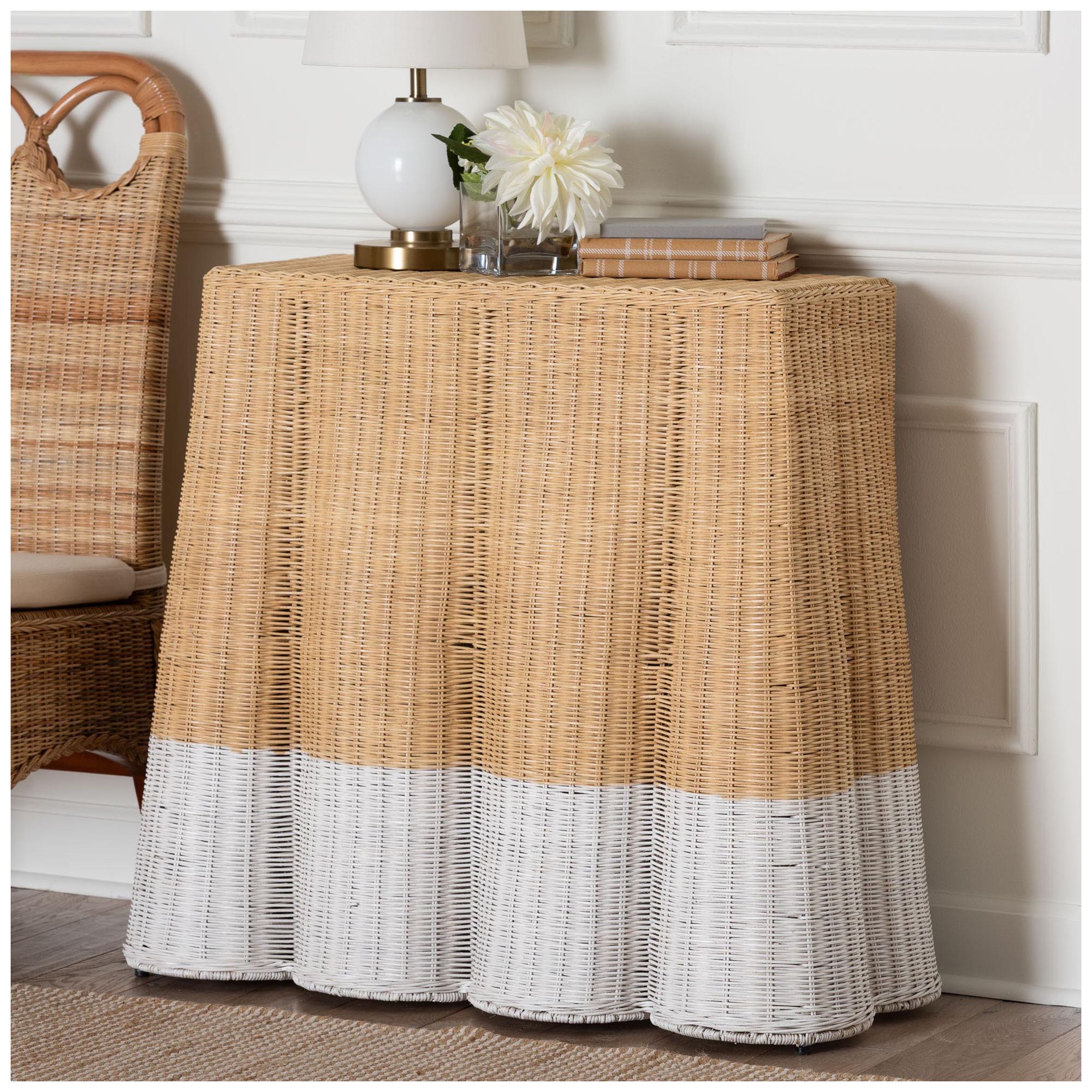 bali & pari Palm Scallop Natural Rattan Console Table - Handwoven Wicker