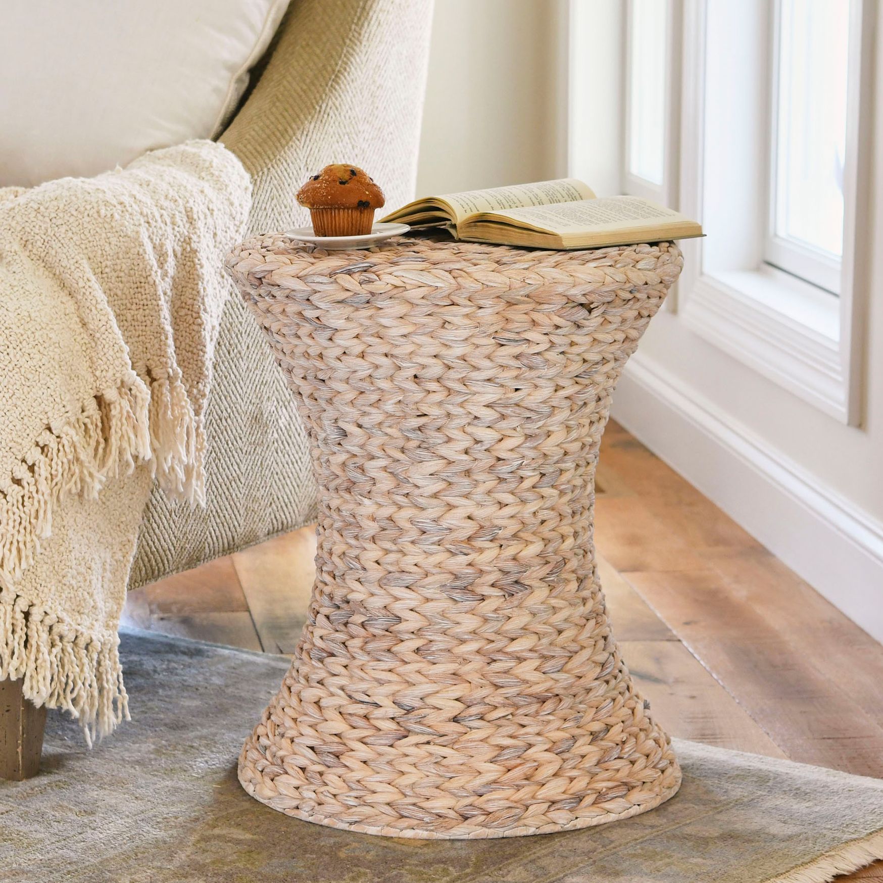 Handwoven Water Hyacinth Stool with Hourglass Shape, White Wash Finish
