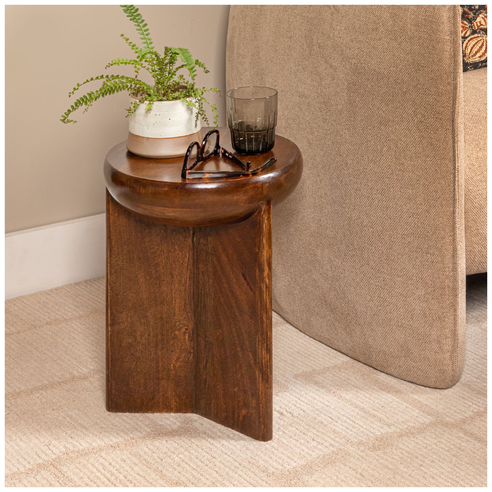 Semi-Sphere Mango Wood Accent Table with Solid Legs, Walnut Finish
